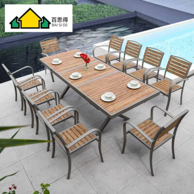 Bộ bàn ghế gỗ nhựa ngoài trời đặt làm sân ngoài trời Bàn ăn thông thường sân vườn ban công ngoài trời kết hợp bàn ghế cafe
