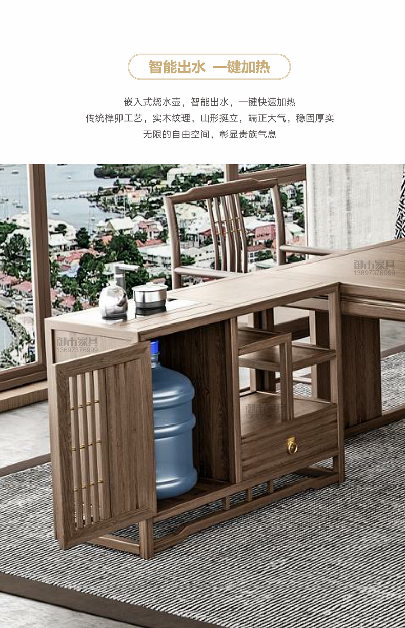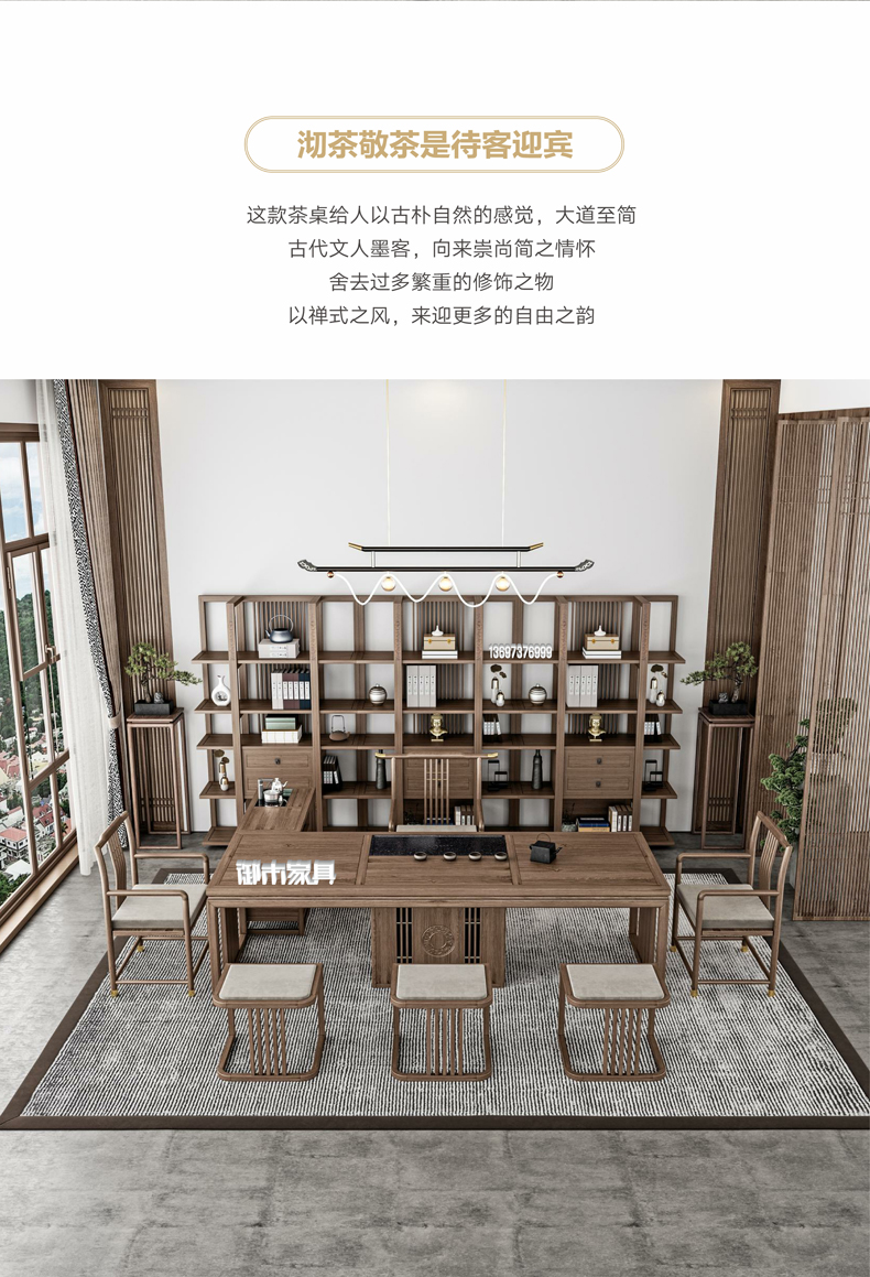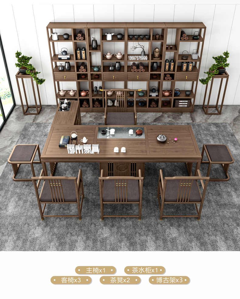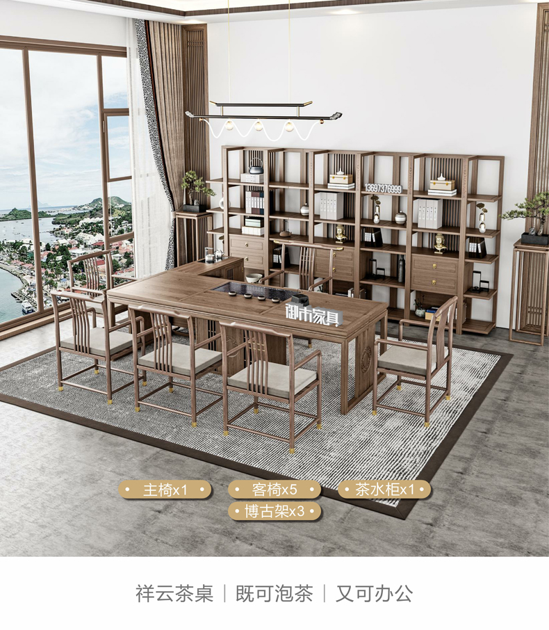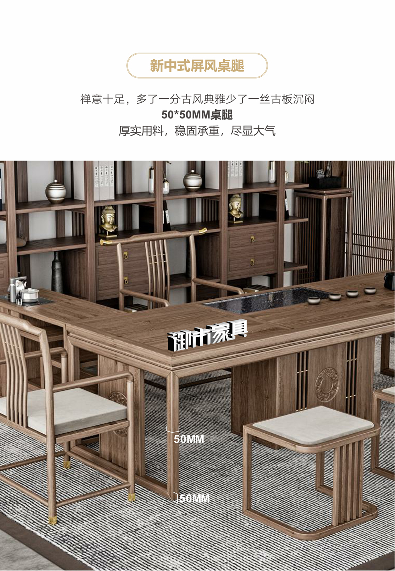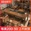 Bộ bàn ghế kết hợp gỗ nguyên khối kiểu Trung Quốc mới Bàn trà Zen Kung Fu Bàn trà văn phòng óc chó màu đen một