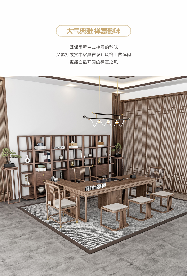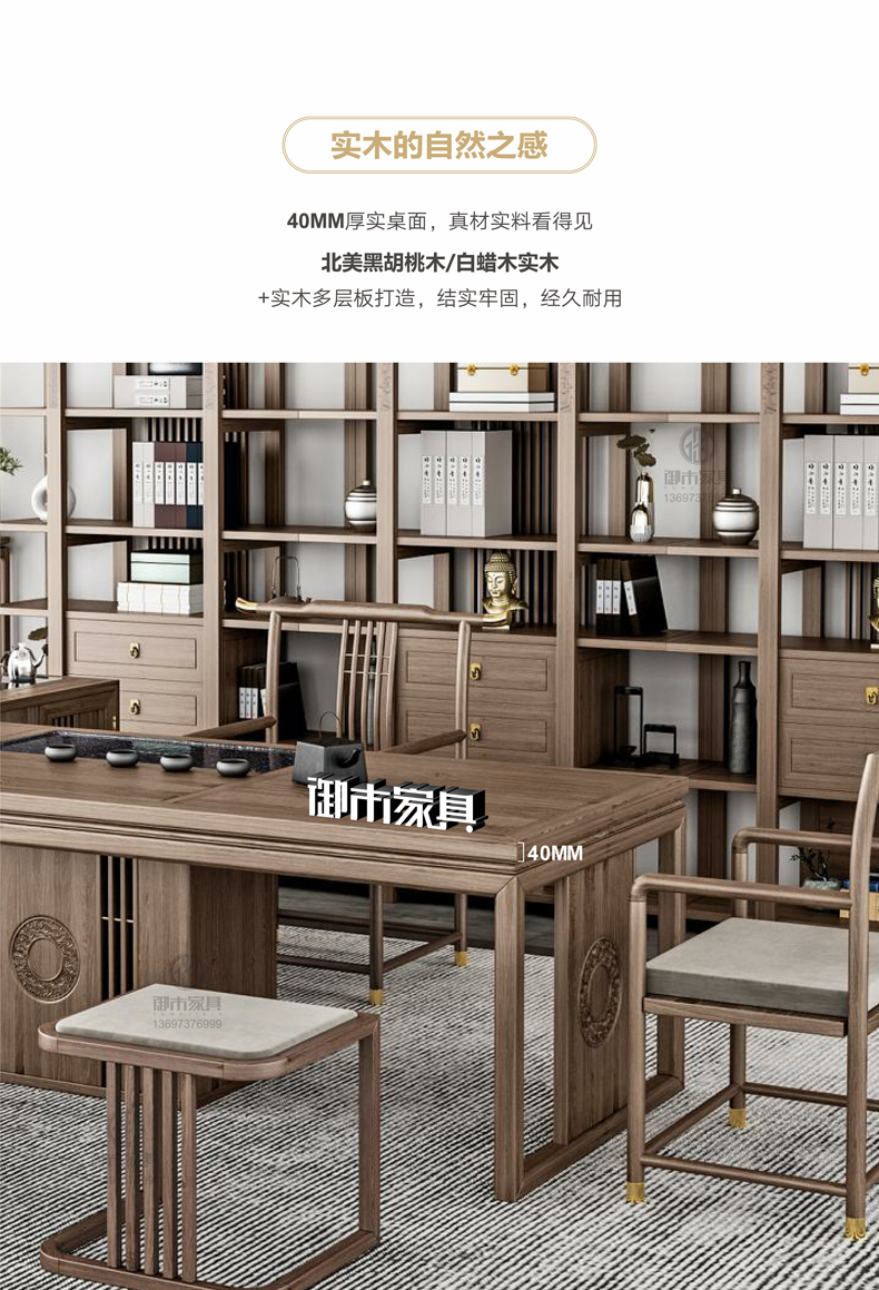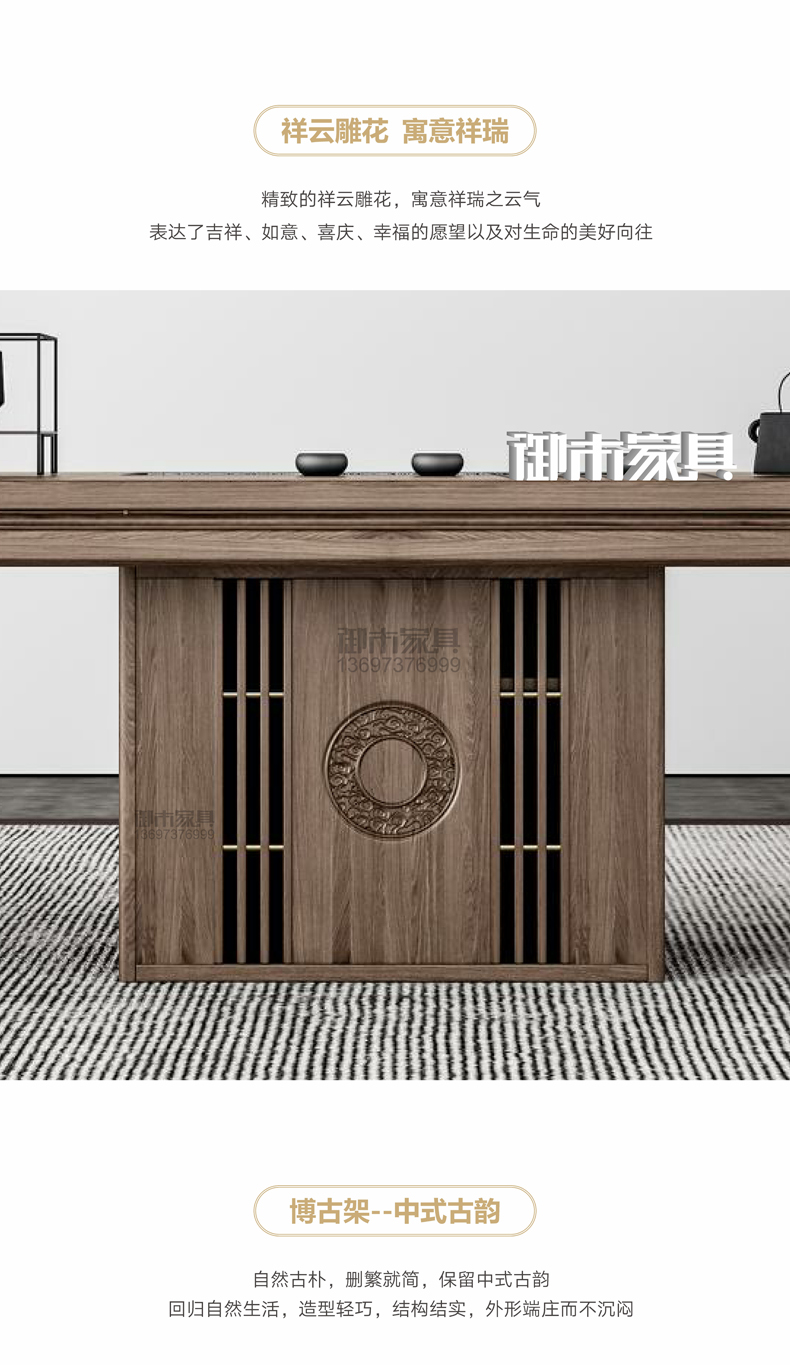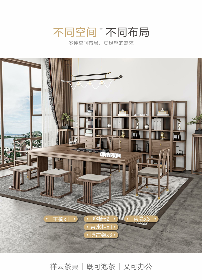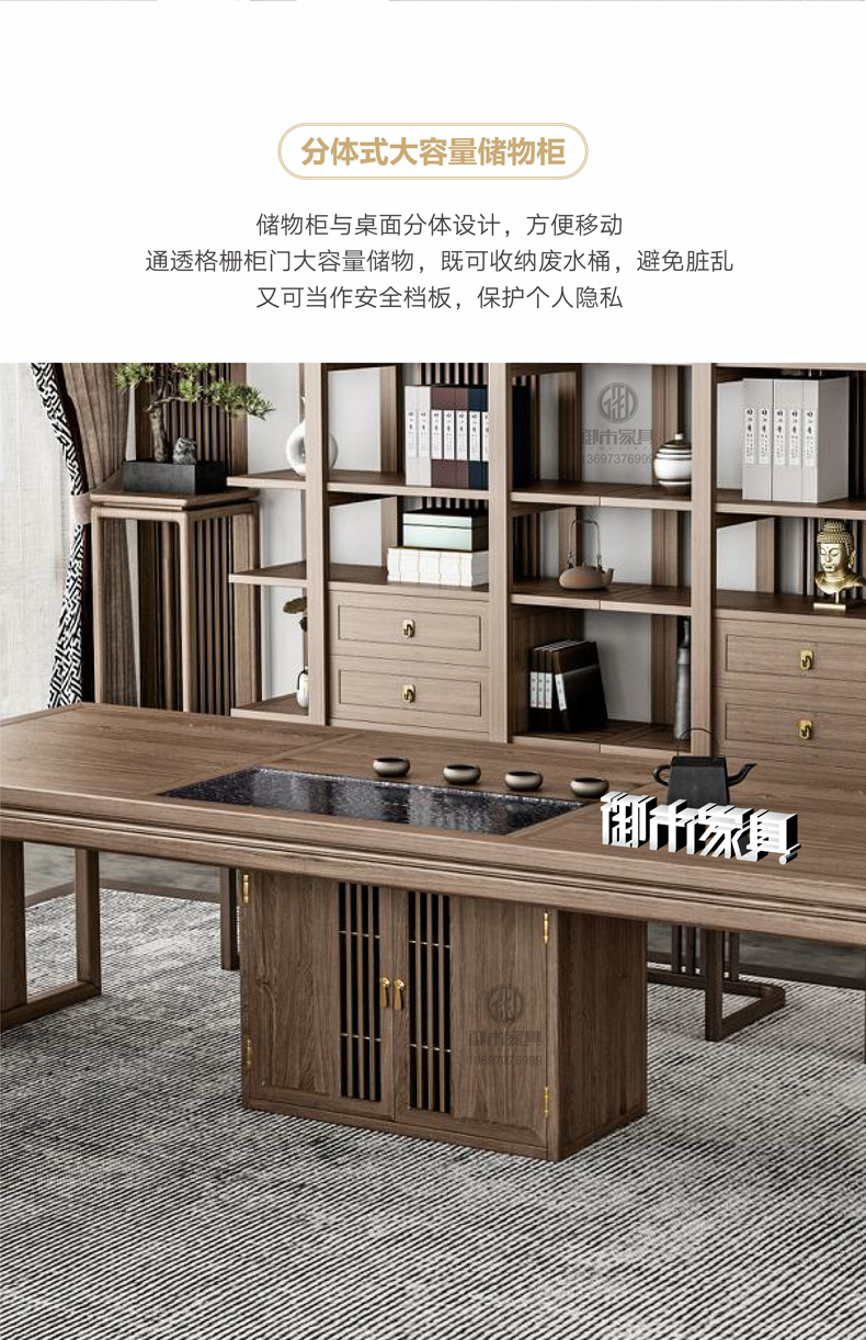 Bộ bàn ghế kết hợp gỗ nguyên khối kiểu Trung Quốc mới Bàn trà Zen Kung Fu Bàn trà văn phòng óc chó màu đen một