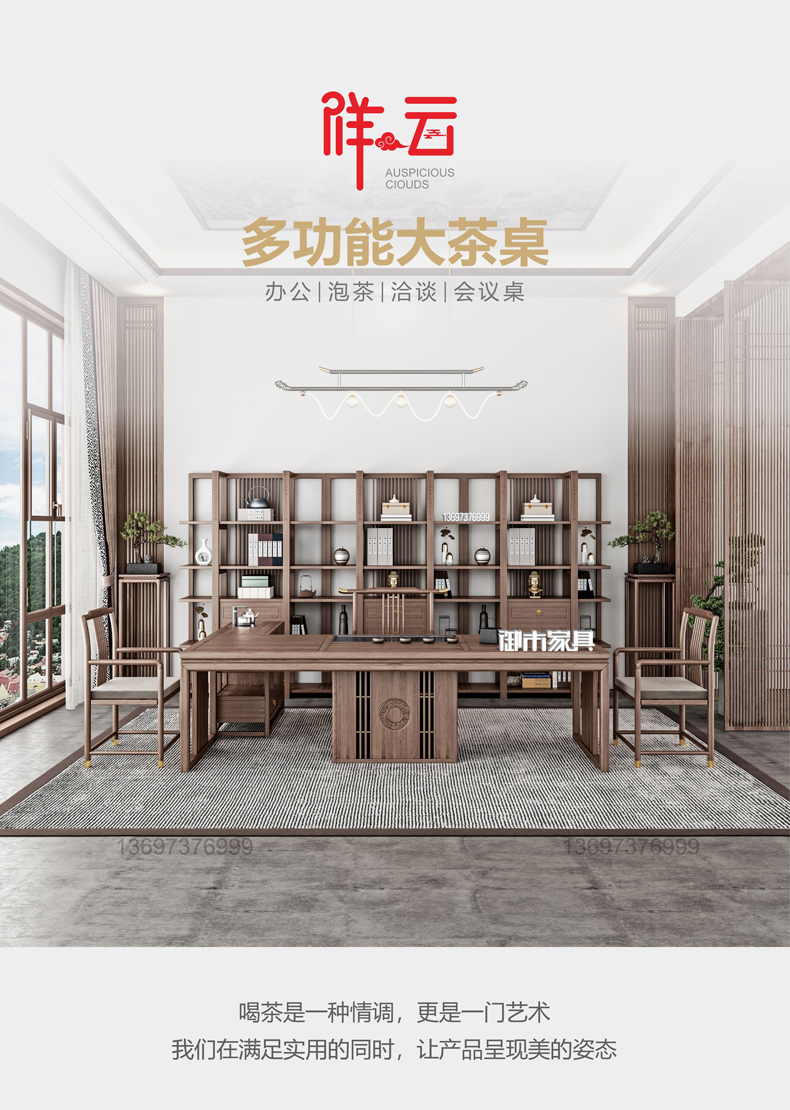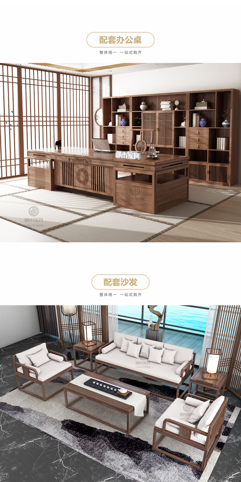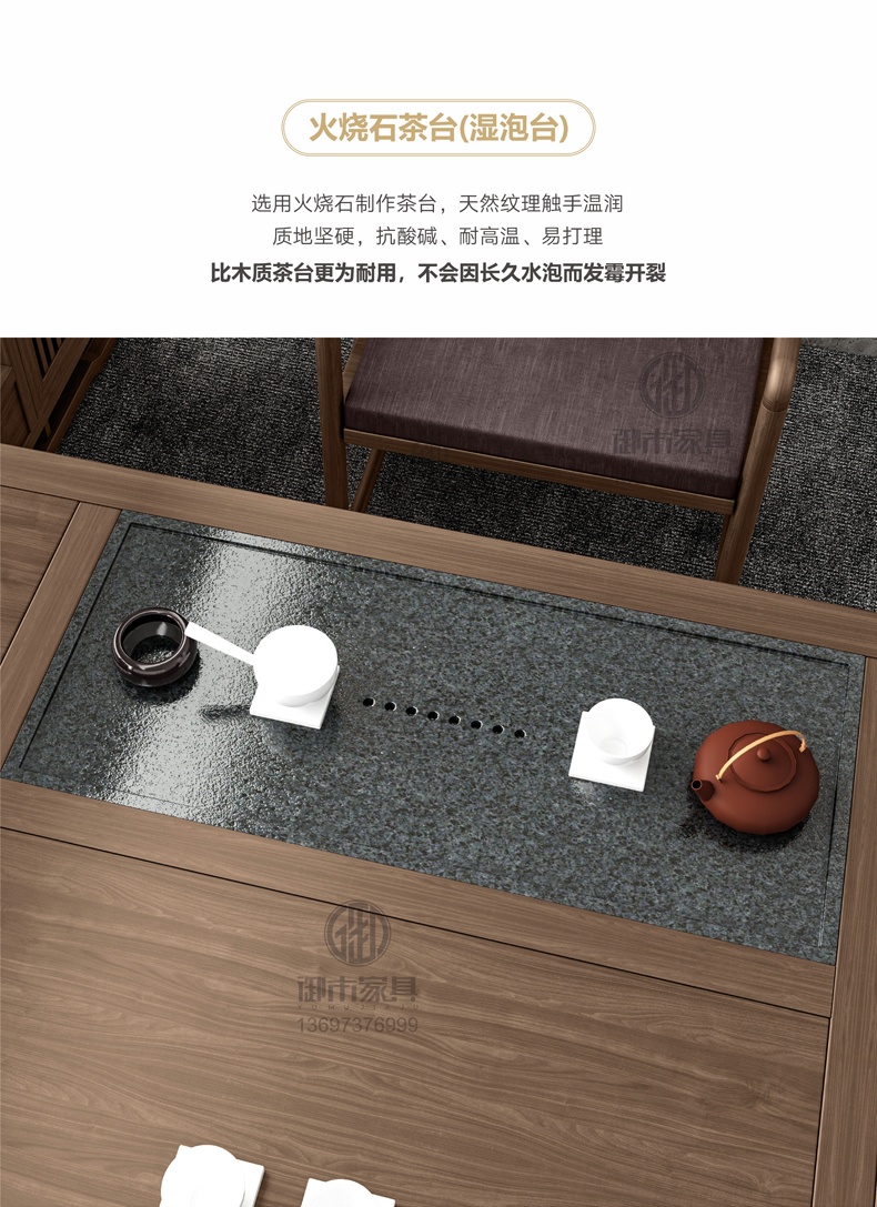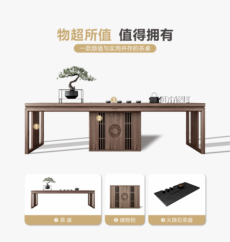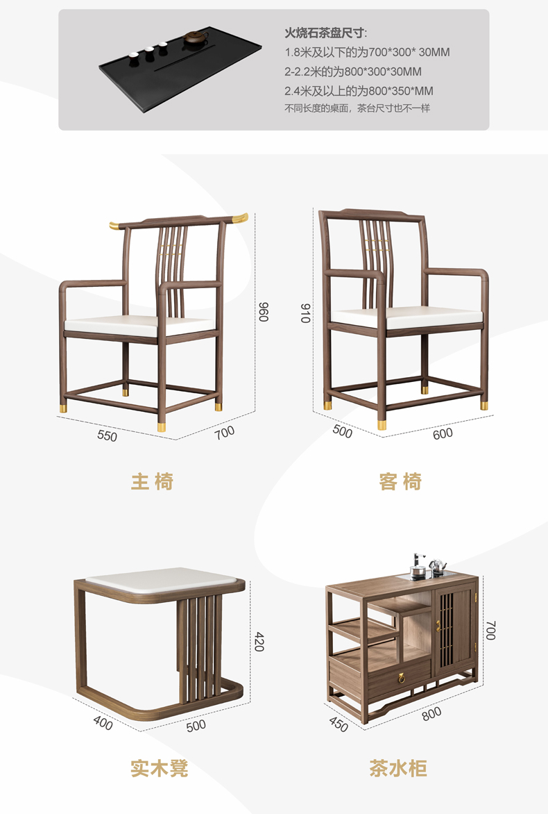 Bộ bàn ghế kết hợp gỗ nguyên khối kiểu Trung Quốc mới Bàn trà Zen Kung Fu Bàn trà văn phòng óc chó màu đen một