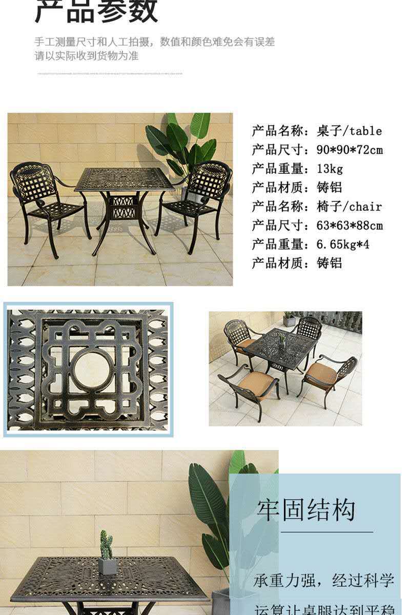 Bộ bàn ghế ngoài trời ba mảnh kết hợp sân vườn ban công giải trí Bộ bàn ghế ngoài trời sân vườn bằng sắt rèn bộ sản phẩm mới Mã số: 003 Thương hiệu: Jiulinglong Mẫu mã: AF-024 Phương pháp xử lý: Tùy chỉnh mẫu Thông số kỹ thuật: Nhiều thông số kỹ thuật Có giao hàng tận nơi hay không: Giao hàng đến điểm nhận hàng Có cung cấp dịch vụ lắp đặt hay không: Không có Nền tảng hạ nguồn chính: ebay/Amazon /Wish/AliExpress /Trạm độc lập/LAZADA/Khác/Khác Thương hiệu riêng được ủy quyền: Có Danh mục: Bộ đồ ba mảnh Người nộp thuế chung: Có Chất liệu: Nhôm đúc Kích thước: Bàn 84*84*73cm ()/Ghế 62*65*89cm ( 4 ghế)/Ghế 62*65*89cm (4 ghế) Có xuất khẩu xuyên biên giới Nguồn cung cấp độc quyền: Có Khu vực bán hàng chính: Châu Phi/Châu Âu/Nam Mỹ/Đông Nam Á/Bắc Mỹ/Đông Bắc Á/Trung Đông/Khác /Phong cách khác: ngoài trời