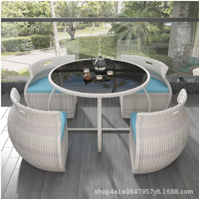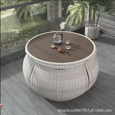 Bộ bàn ghế ngoài trời ban công sân vườn gỗ chống ăn mòn bàn tròn nhỏ ngoài trời sân giải trí có dù ba khúc kết hợp ghế mây được thiết kế để tạo điểm nhấn cho khu vực sân vườn, ban công hoặc không gian ngoài trời.