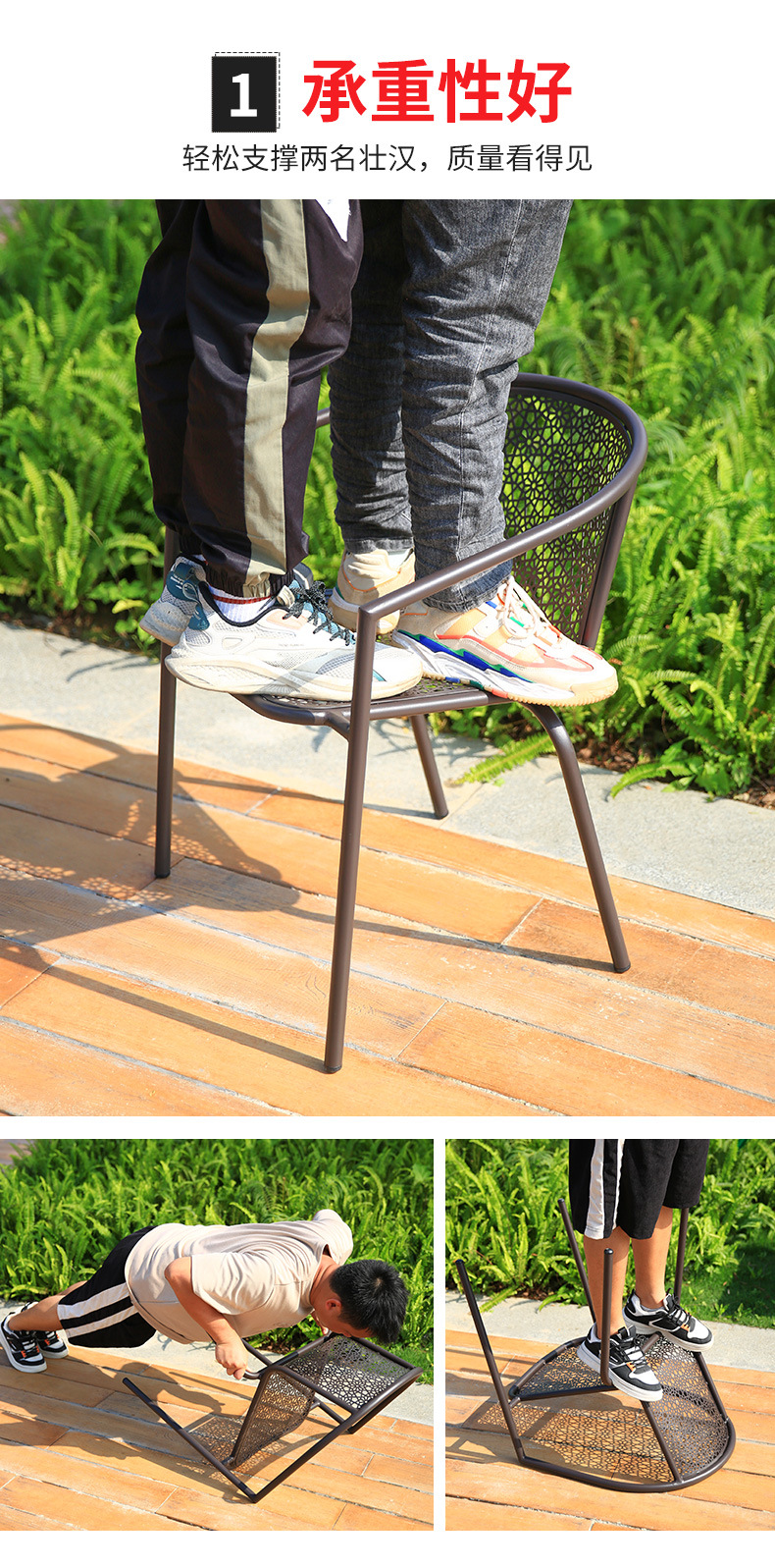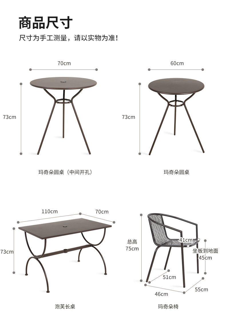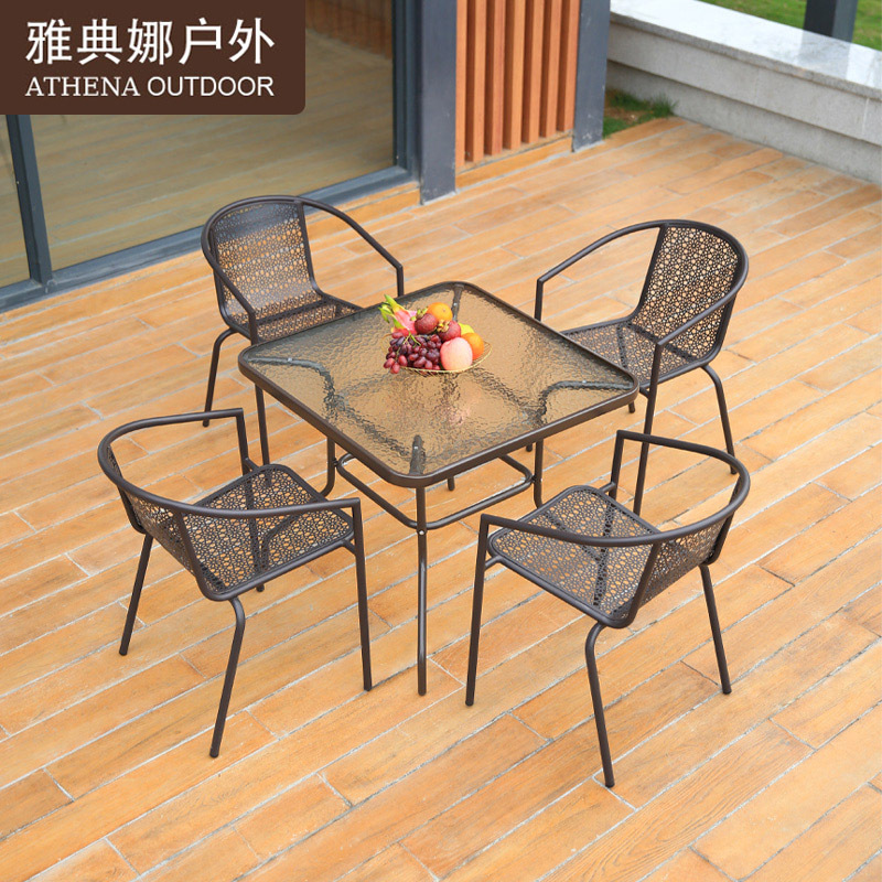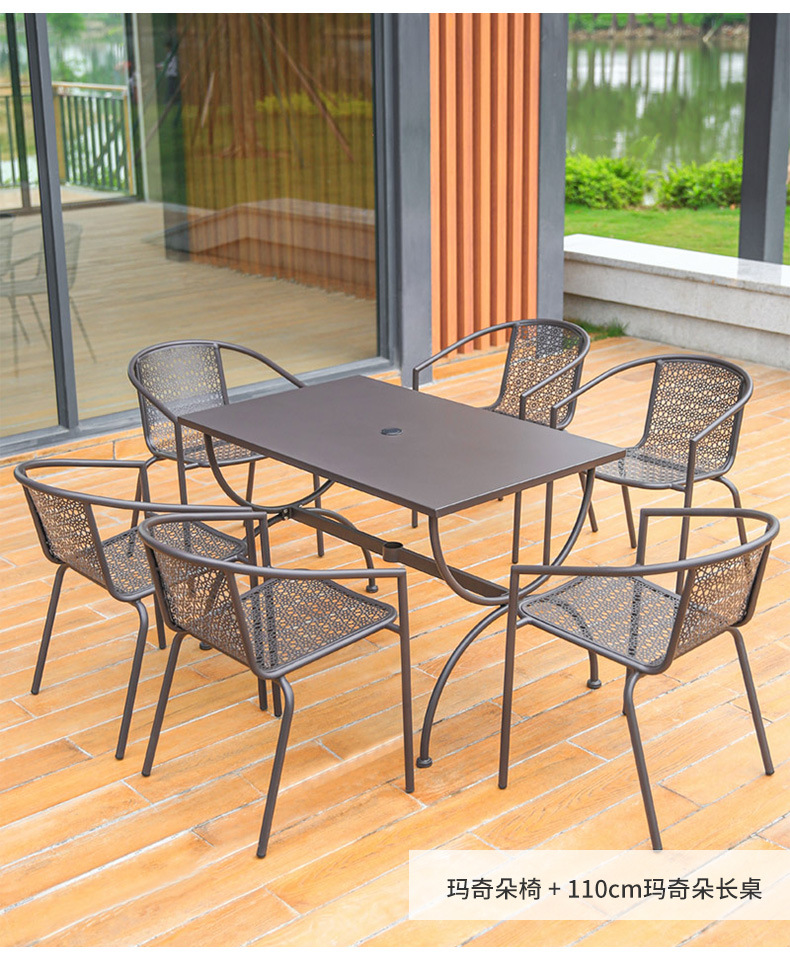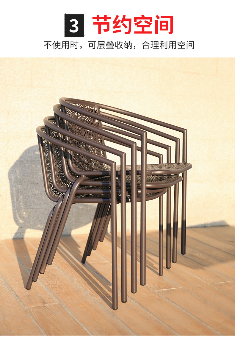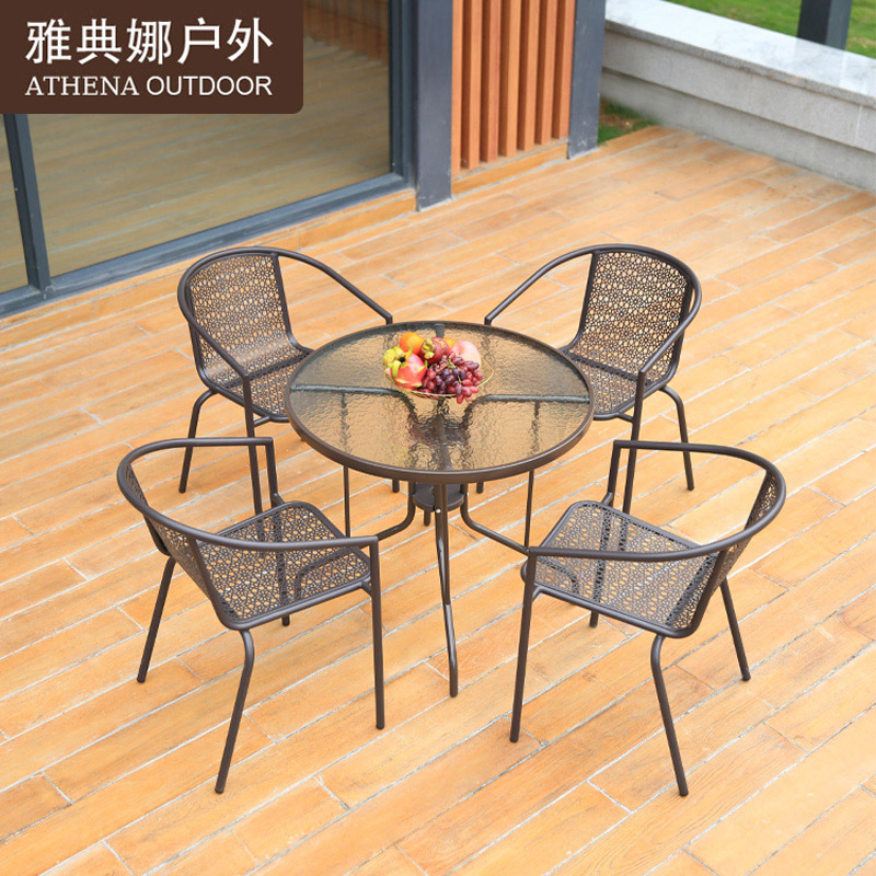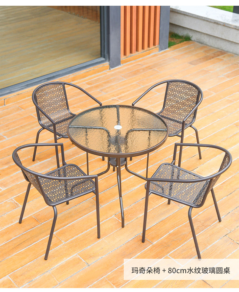 Bộ bàn ghế ngoài trời Bàn tròn kim loại Bàn cà phê giải trí quán trà sữa Bàn ghế sắt sân ban công ngoài trời Bàn ghế