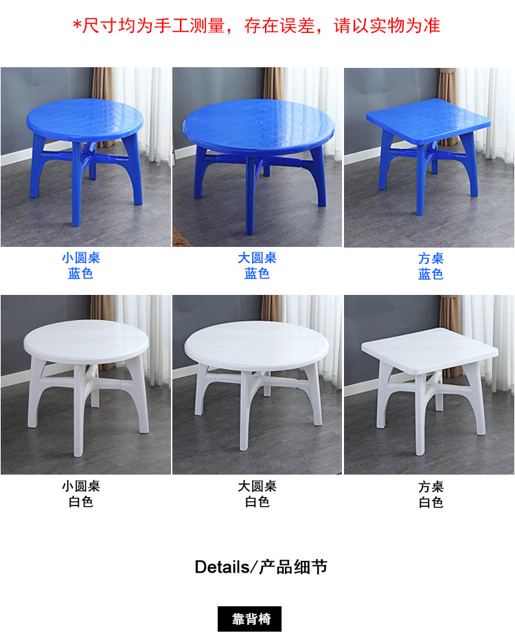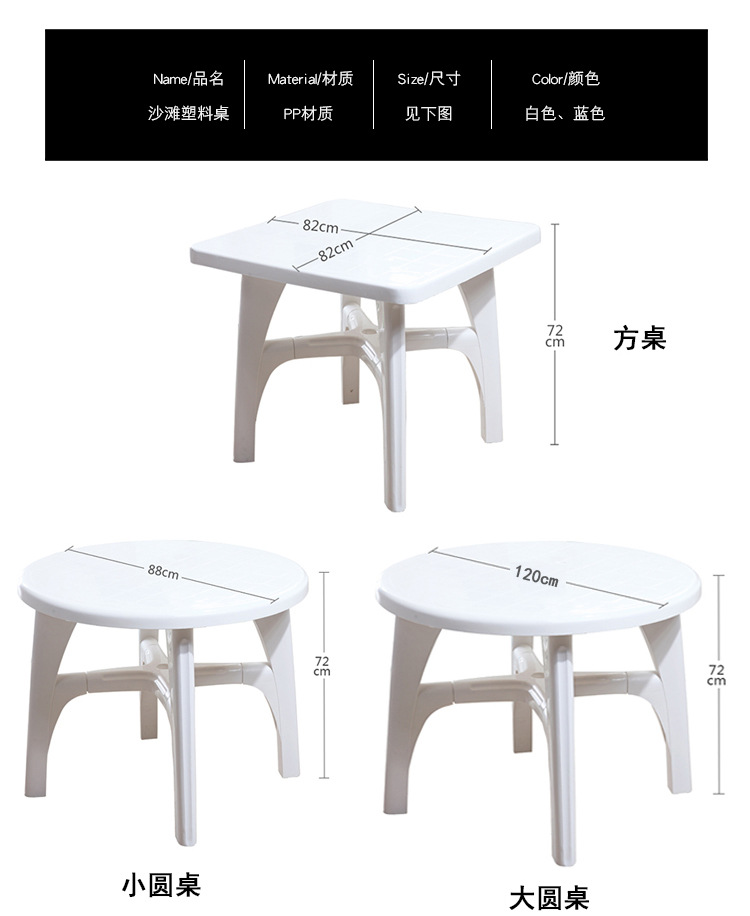 圆桌桌面直径88CM,高度72CM(蓝色,白色)坐4-6人