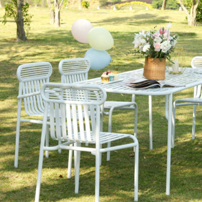 Bộ bàn ghế ngoài trời bằng thép tối giản hiện đại kết hợp biệt thự sân vườn giải trí cafe quán trà sữa bộ bàn ghế được thiết kế để tạo điểm nhấn cho khu vực sân vườn, ban công hoặc không gian ngoài trời.
