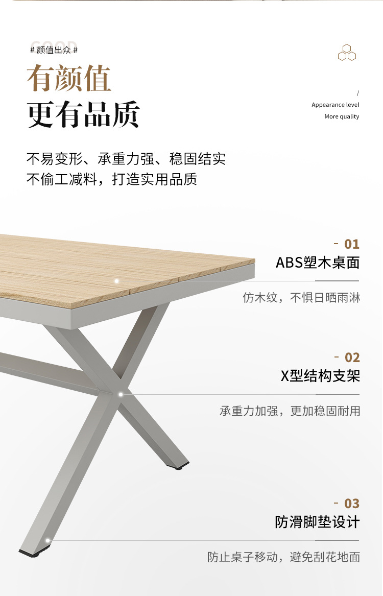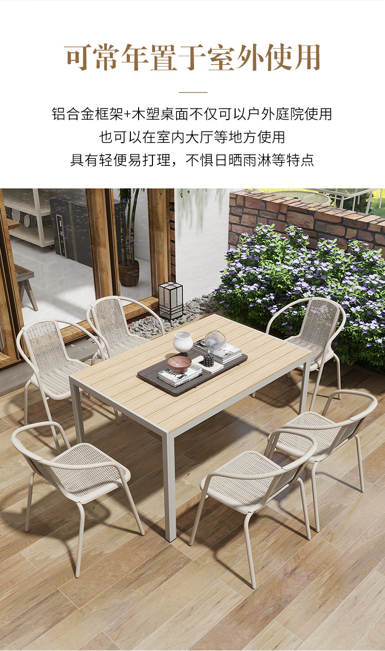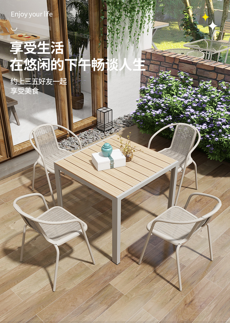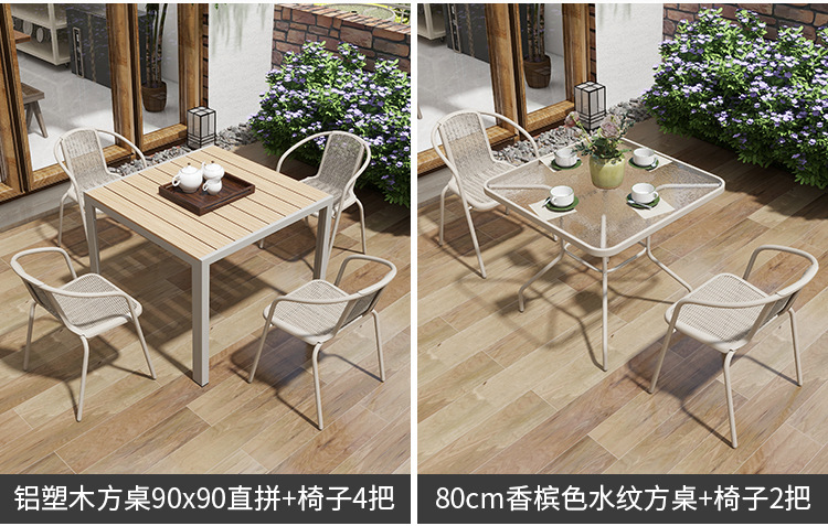 Bộ bàn ghế ngoài trời gỗ nhựa ba đến năm bộ sân vườn chống ăn mòn chống thấm nước giải trí ngoài trời ban công ngoài trời