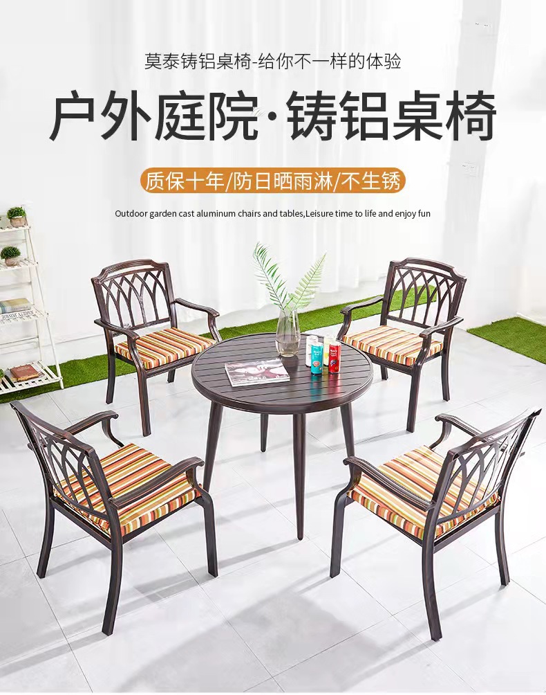 Bộ bàn ghế nhôm đúc ngoài trời ba năm tấm kết hợp ban công sân vườn bàn ghế thư giãn sân thượng ngoài trời bàn ghế sắt rèn là lựa chọn lý tưởng cho không gian ngoài trời hiện đại. Liên hệ ngay để được hỗ trợ nhập khẩu và tư vấn chi tiết.
