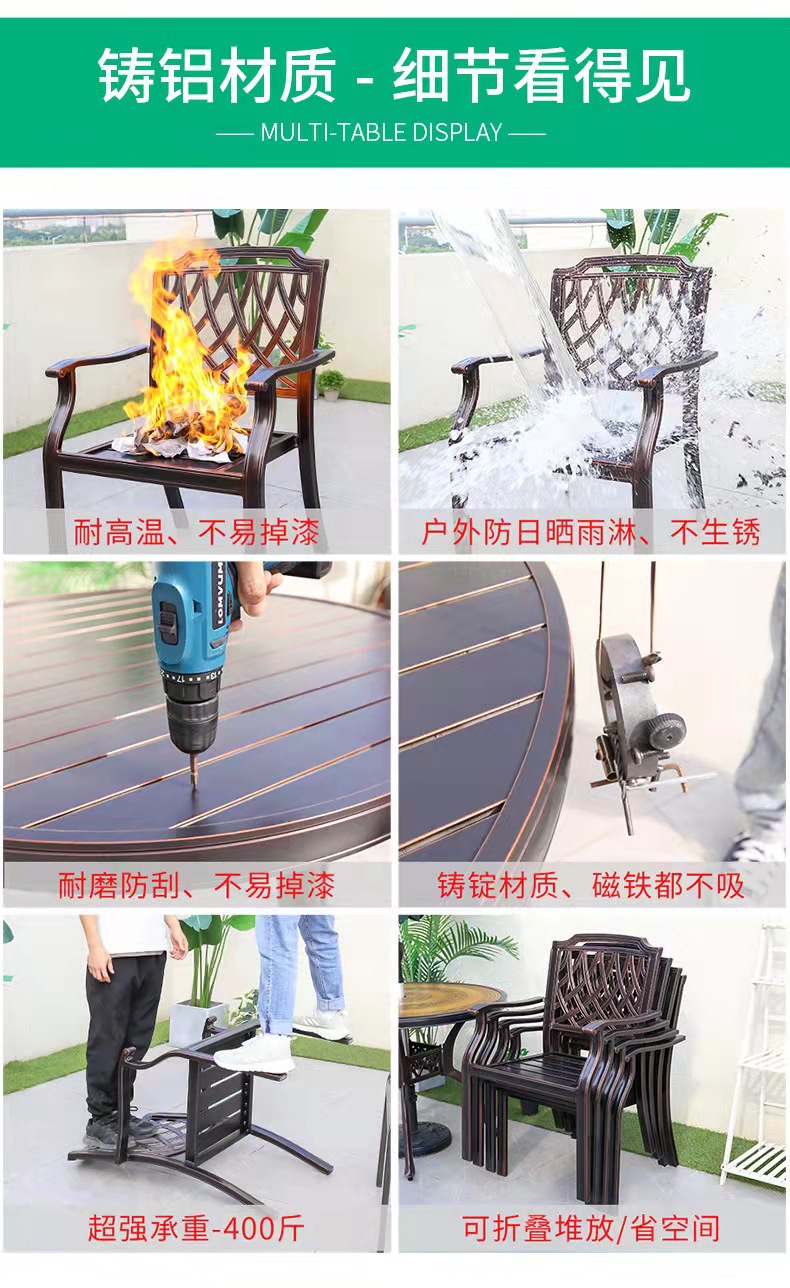 Bộ bàn ghế nhôm đúc ngoài trời ba năm tấm kết hợp ban công sân vườn bàn ghế thư giãn sân thượng ngoài trời bàn ghế sắt rèn