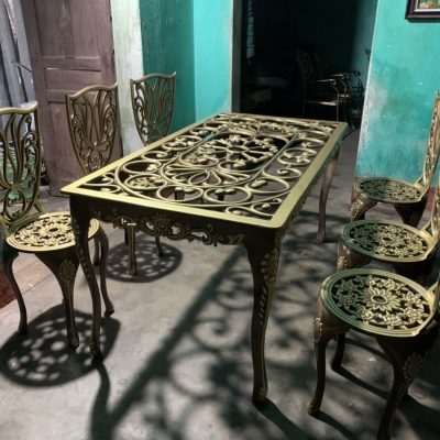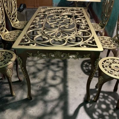 Bộ bàn ghế nhôm đúc ngoài trời. Bàn ghế sân vườn đẹp. Bàn ghế nhôm sản xuất tại xưởng của chúng tôi có nhiều mẫu mã kiểu dáng khác nhau. Tuy nhiên loại được ưa chuộng nhất là bàn ghế nhôm kiểu Châu Âu. Sản phẩm bền và đẹp, phủ sơn 5 lớp phù hợp để ngoài trời, chịu mưa nắng.