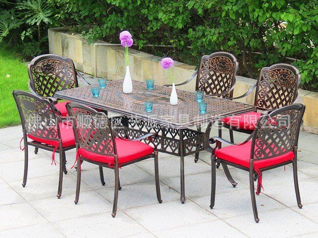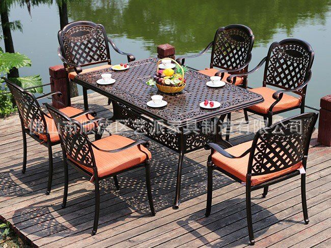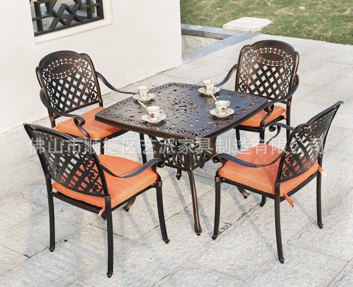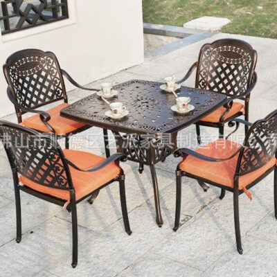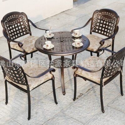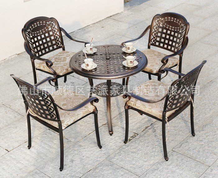 Bộ bàn ghế nhôm đúc ngoài trời kết hợp biệt thự phong cách Châu Âu sân vườn ngoài trời ban công sắt bàn ghế dài giải trí