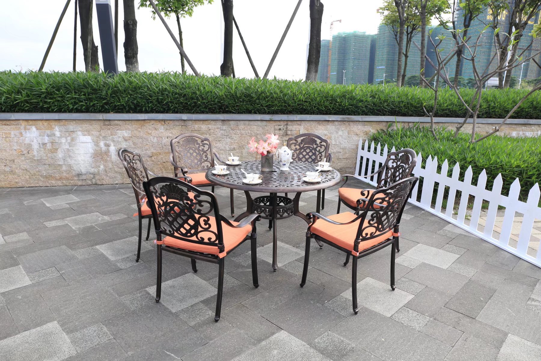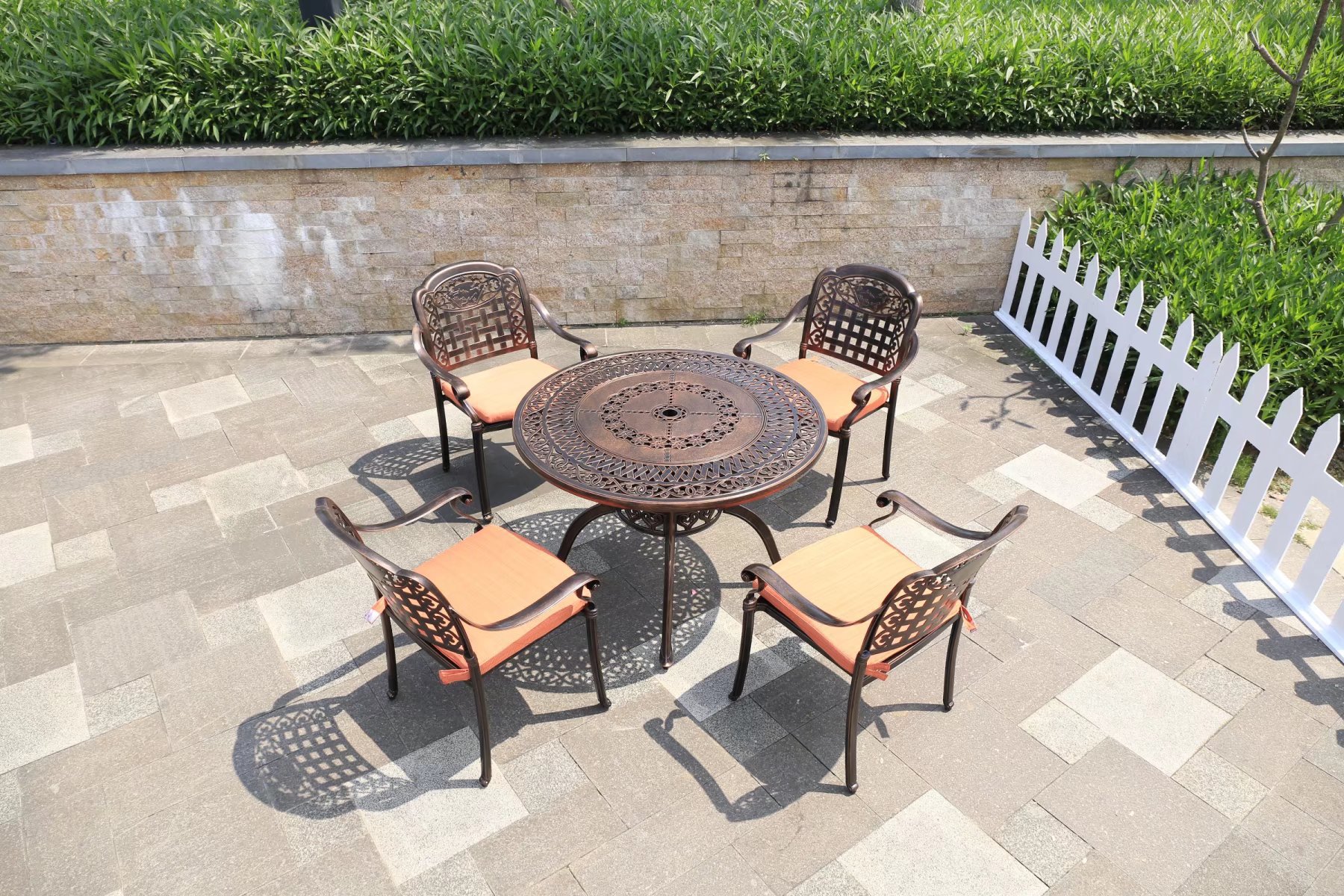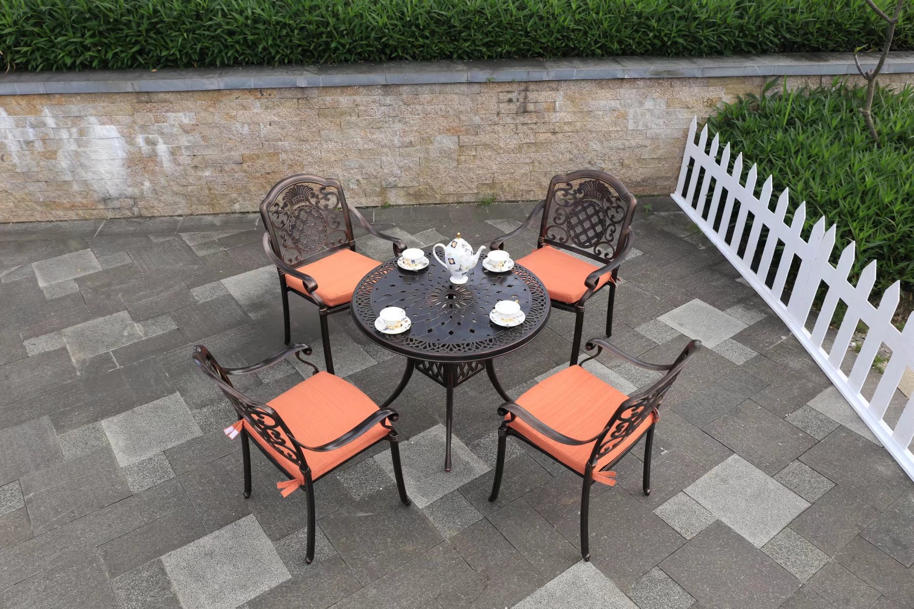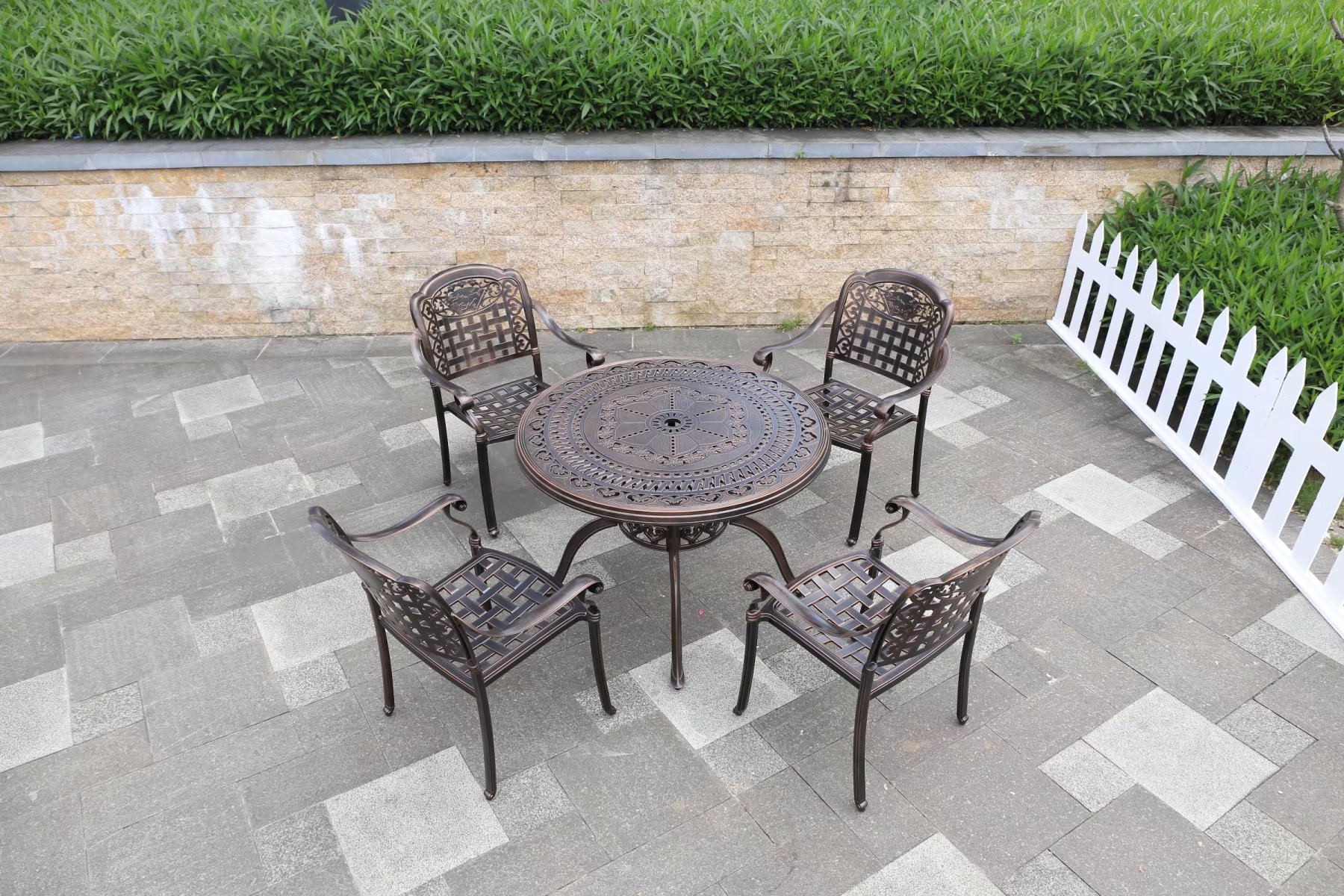 Bộ bàn ghế nhôm đúc ngoài trời nhà ngoài trời sân vườn ngoài trời chống thấm nước chống nắng kết hợp bàn ăn tròn được thiết kế để tạo điểm nhấn cho khu vực sân vườn, ban công hoặc không gian ngoài trời.