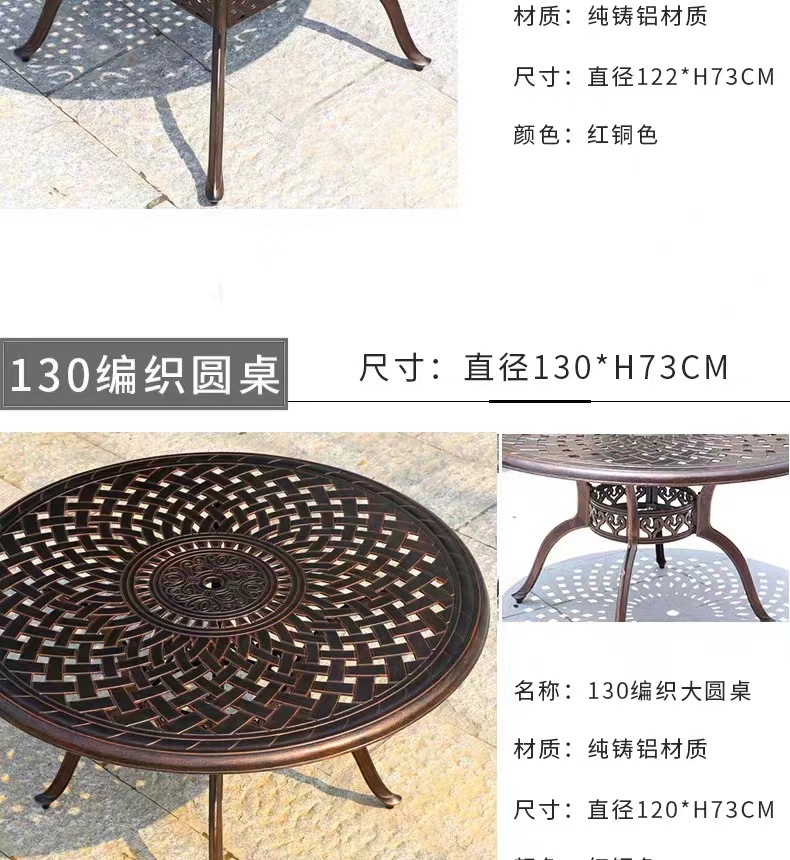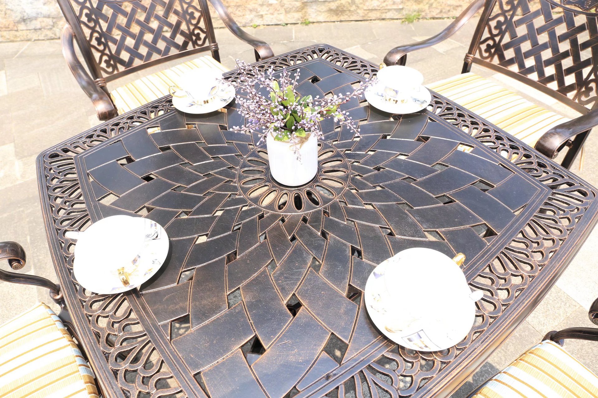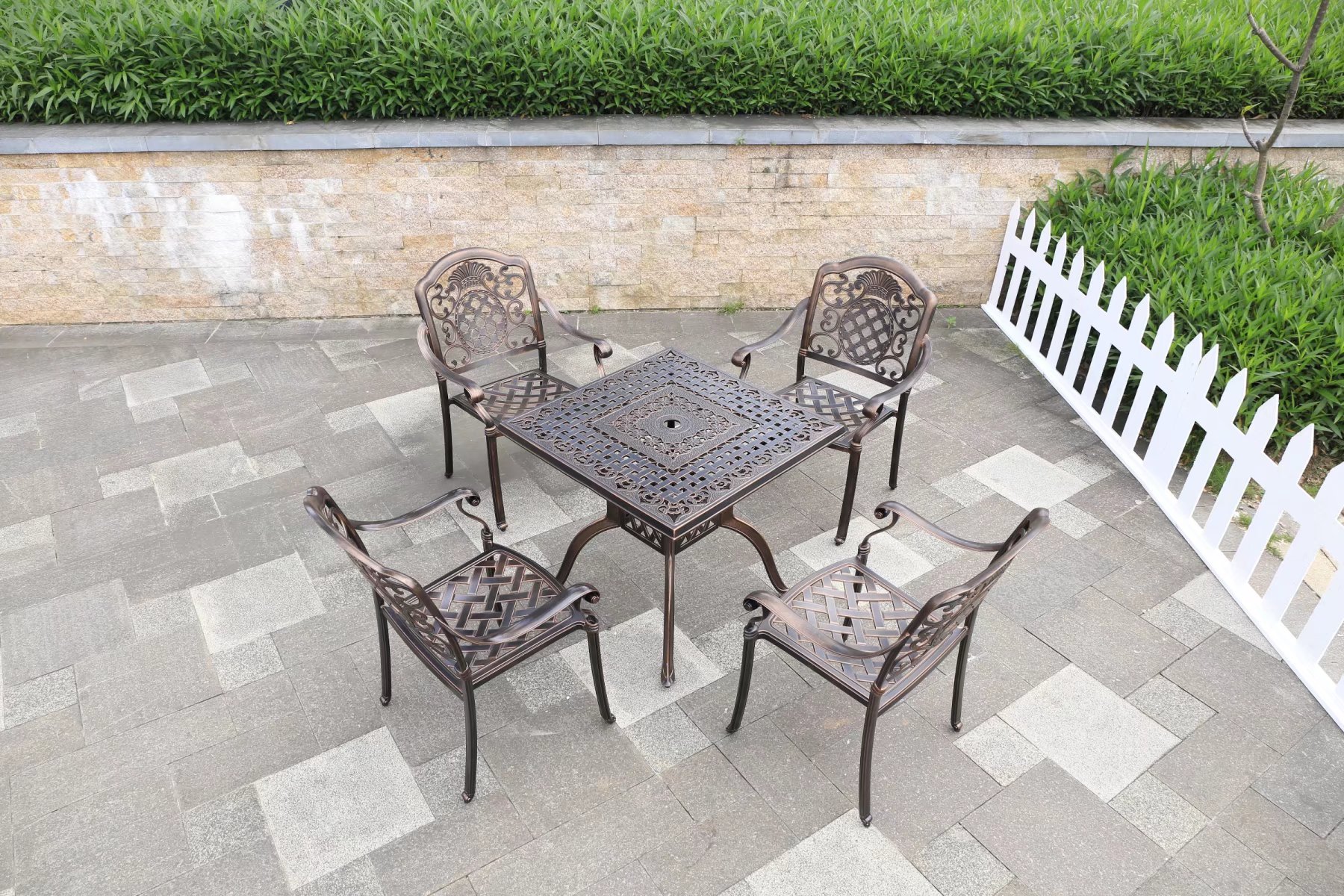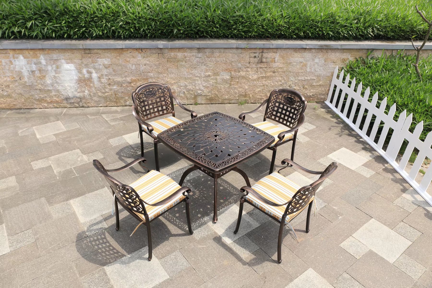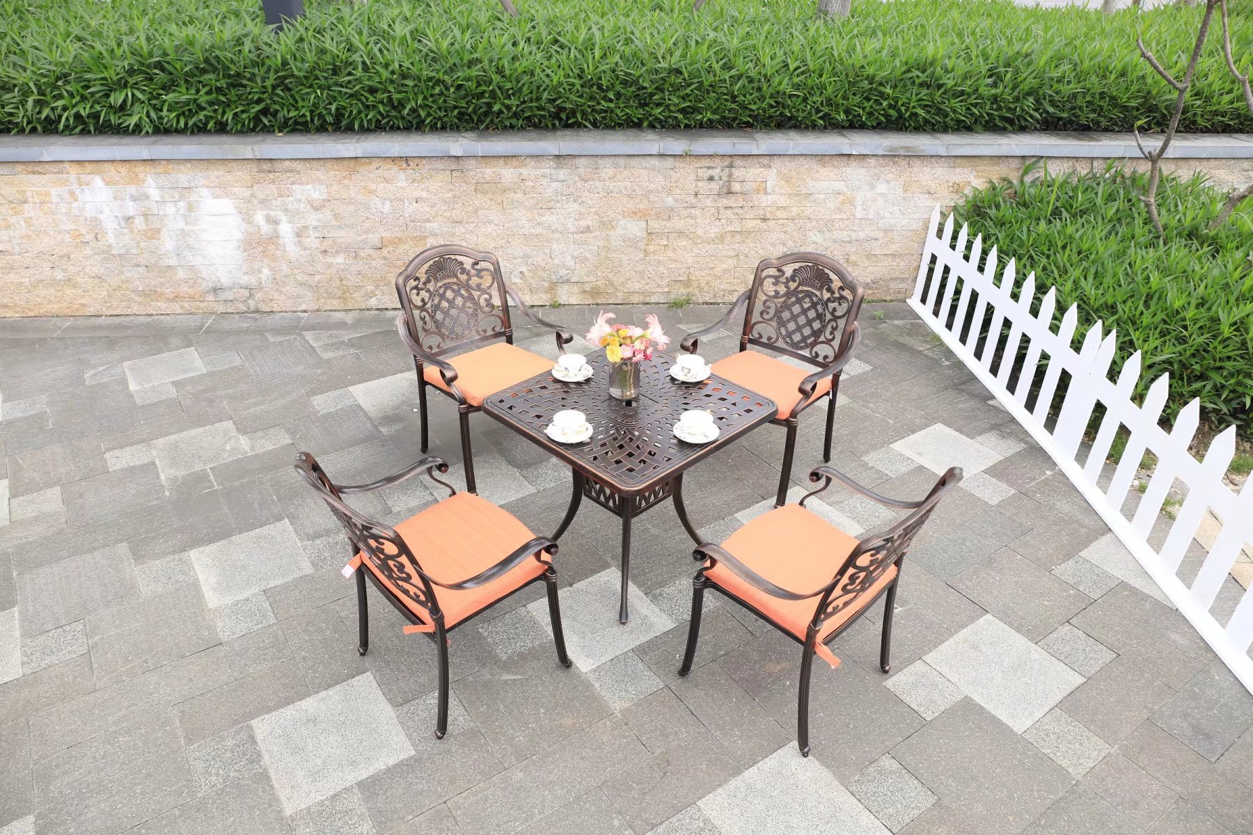 Bộ bàn ghế nhôm đúc ngoài trời nhà ngoài trời sân vườn ngoài trời chống thấm nước chống nắng kết hợp bàn ăn tròn được thiết kế để tạo điểm nhấn cho khu vực sân vườn, ban công hoặc không gian ngoài trời.