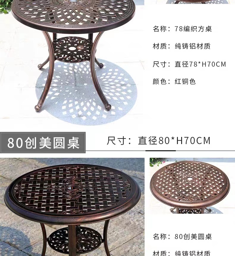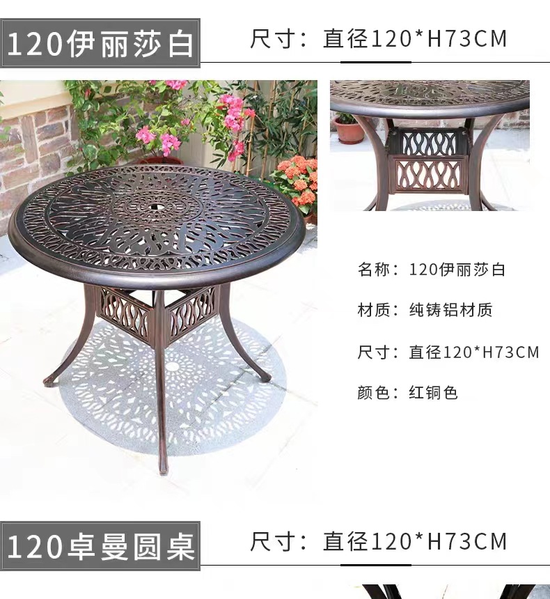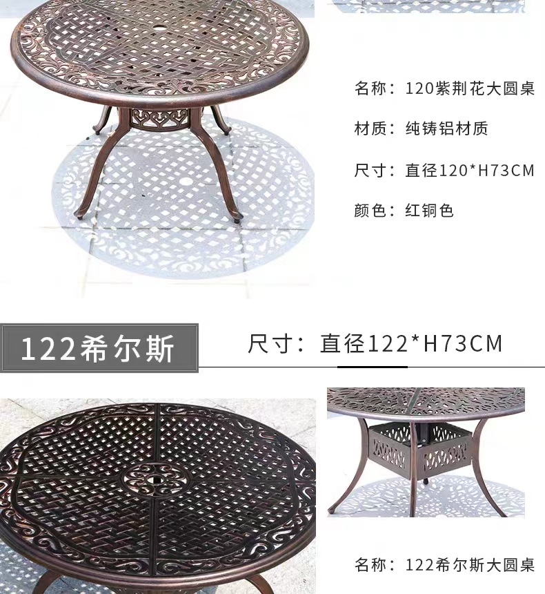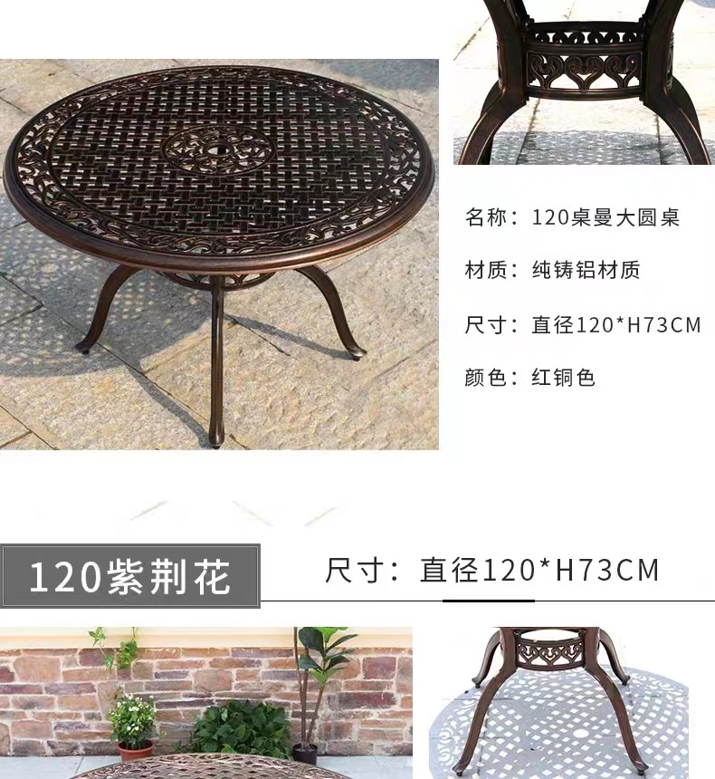 Bộ bàn ghế nhôm đúc ngoài trời nhà ngoài trời sân vườn ngoài trời chống thấm nước chống nắng kết hợp bàn ăn tròn