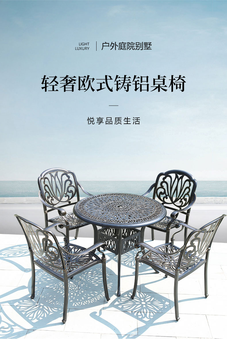 Bộ bàn ghế nhôm đúc ngoài trời phong cách châu âu bộ bàn ghế ngoài trời biệt thự thư giãn ngoài trời ban công sân vườn ngoài trời sắt rèn là lựa chọn lý tưởng cho không gian công cộng, sân vườn hoặc khu đô thị. Sản phẩm giúp nâng cao hình ảnh chuyên nghiệp và sạch đẹp cho môi trường sống.