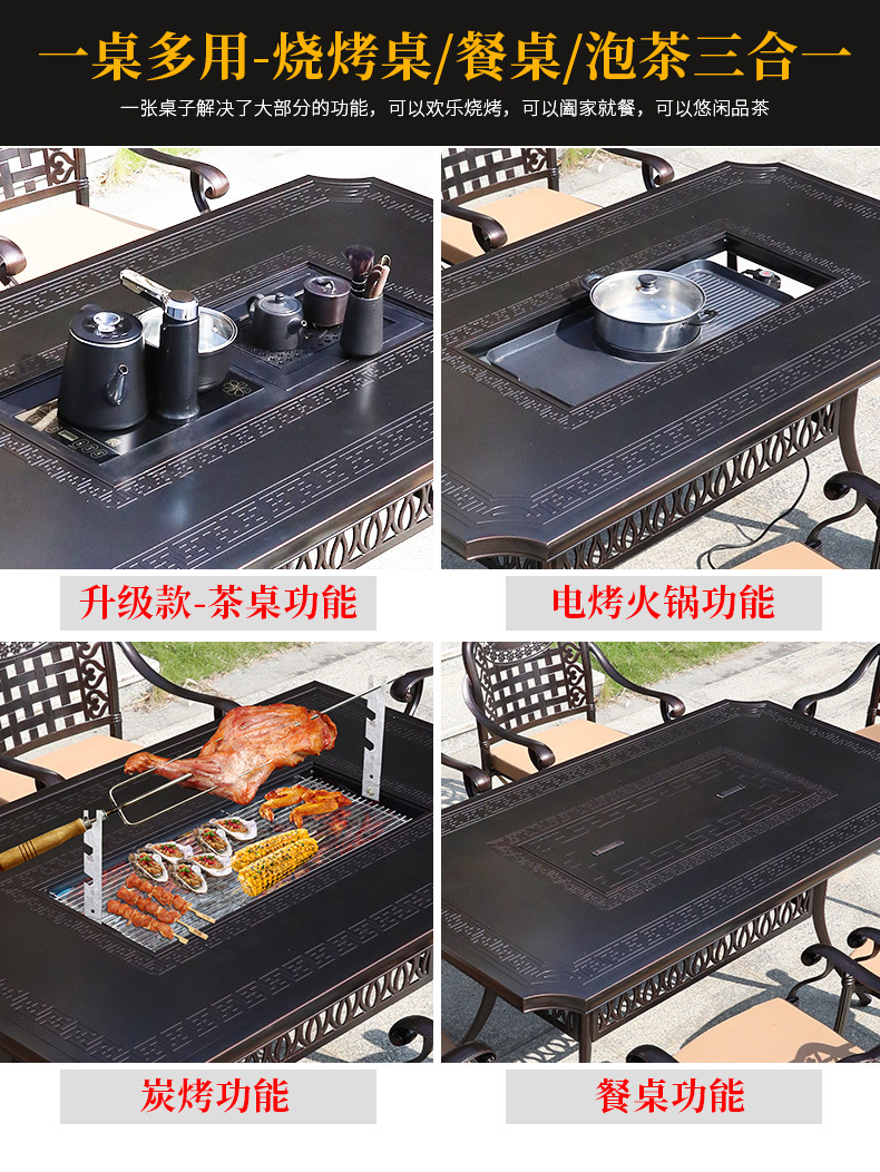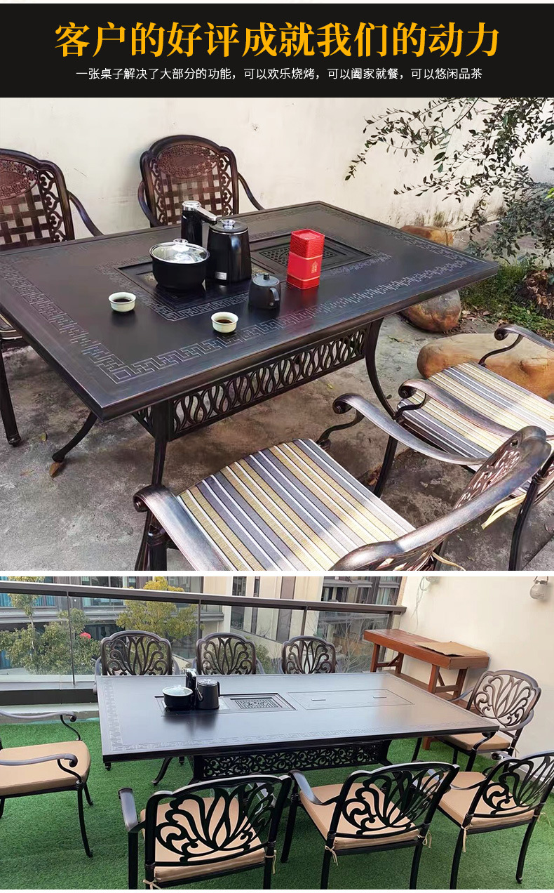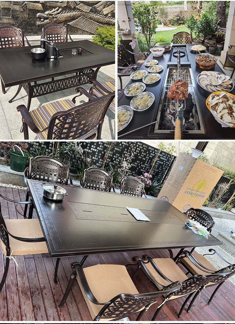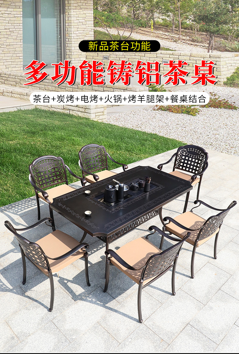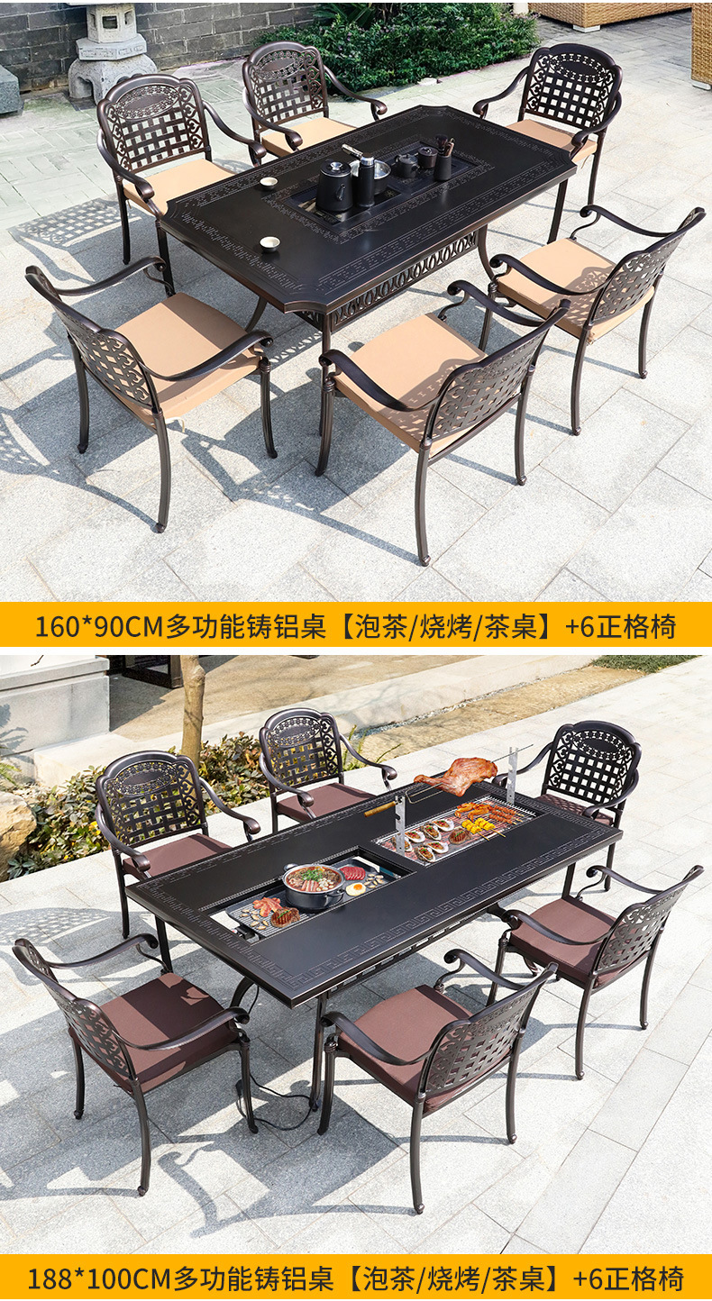 Bộ bàn ghế nhôm đúc ngoài trời sân vườn biệt thự ngoài trời tiệc Bàn ghế ăn lẩu nướng Bàn ghế uống trà