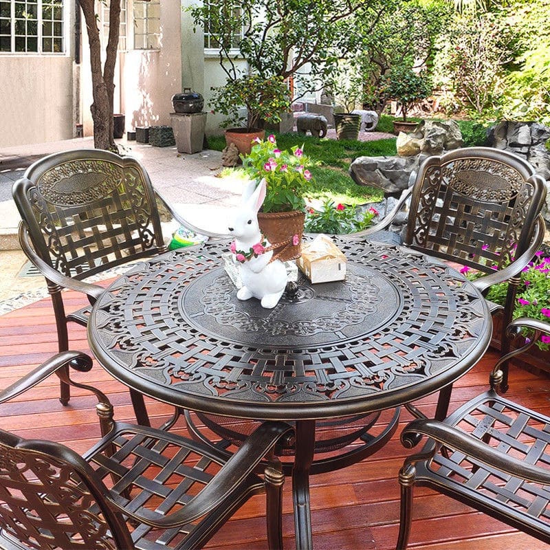 Bộ bàn ghế nhôm đúc ngoài trời sân vườn giải trí ngoài trời bộ ba năm món ban công ngoài trời Xưởng rèn sắt mỹ thuật phong cách châu Âu bán buôn là lựa chọn lý tưởng cho không gian công cộng, sân vườn hoặc khu đô thị. Sản phẩm giúp nâng cao hình ảnh chuyên nghiệp và sạch đẹp cho môi trường sống.