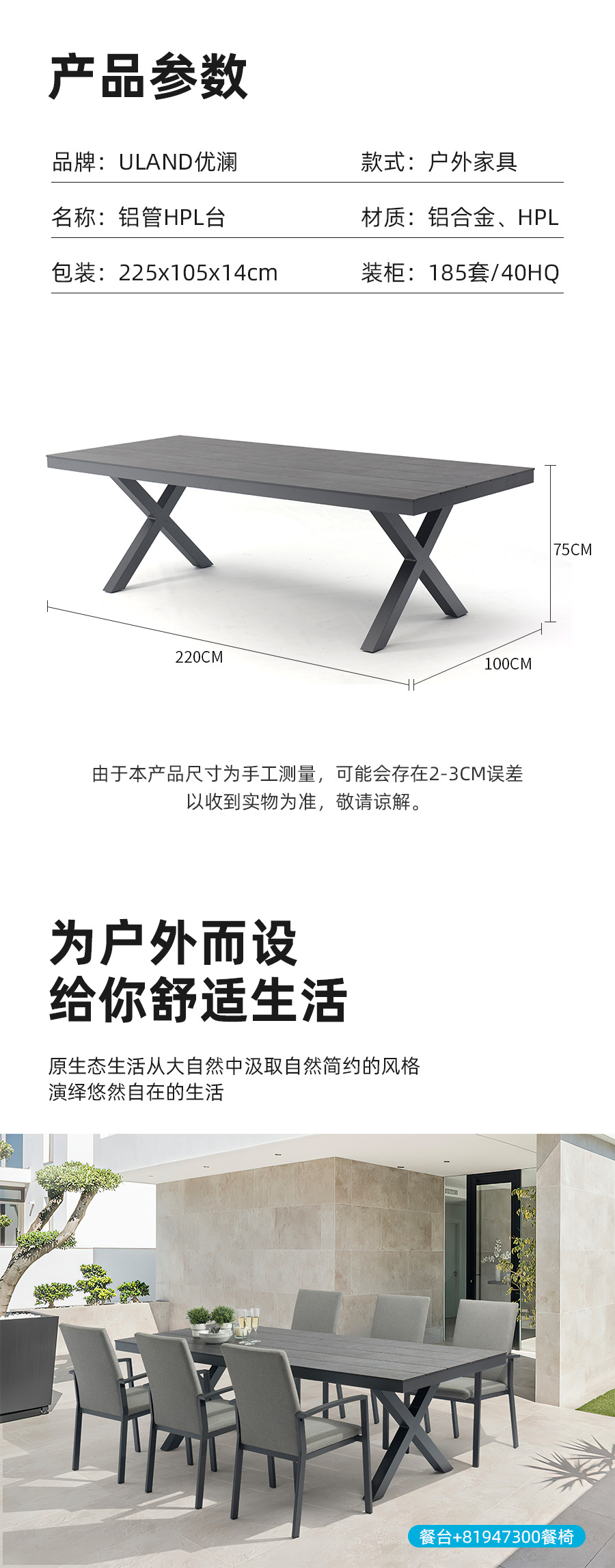 Bộ bàn ghế sân vườn ngoài trời đơn giản cafe sân vườn ban công thoáng bộ bàn ghế ngoài trời kết hợp bộ bàn ghế ăn Mã hàng: 82198340 Thương hiệu: Uland Màu sắc: 82198340-Graphite/81947300-Ghế ăn/13518000-Ghế nhôm/13518000-Ghế nhôm Model: Bộ bàn ghế ngoài trời Phương pháp gia công: Tùy chỉnh theo bản vẽ Tòa nhà có cung cấp dịch vụ lắp đặt không: Có Các nền tảng hạ nguồn chính: ebay/Amazon/AliExpress/Trạm độc lập/Trạm độc lập Có thương hiệu riêng có thể được ủy quyền: Có Cho dù đó là người nộp thuế chung: Có Chất liệu: Hợp kim nhôm có phải là nguồn đặc biệt để xuất khẩu xuyên biên giới hay không: Có Chính khu vực bán hàng: Châu Âu/Đông Nam Á/Bắc Mỹ/Đông Bắc Á/Trung Đông/Trung Đông Phong cách: hiện đại và đơn giản Bối cảnh: sân trong, biệt thự, quán ăn