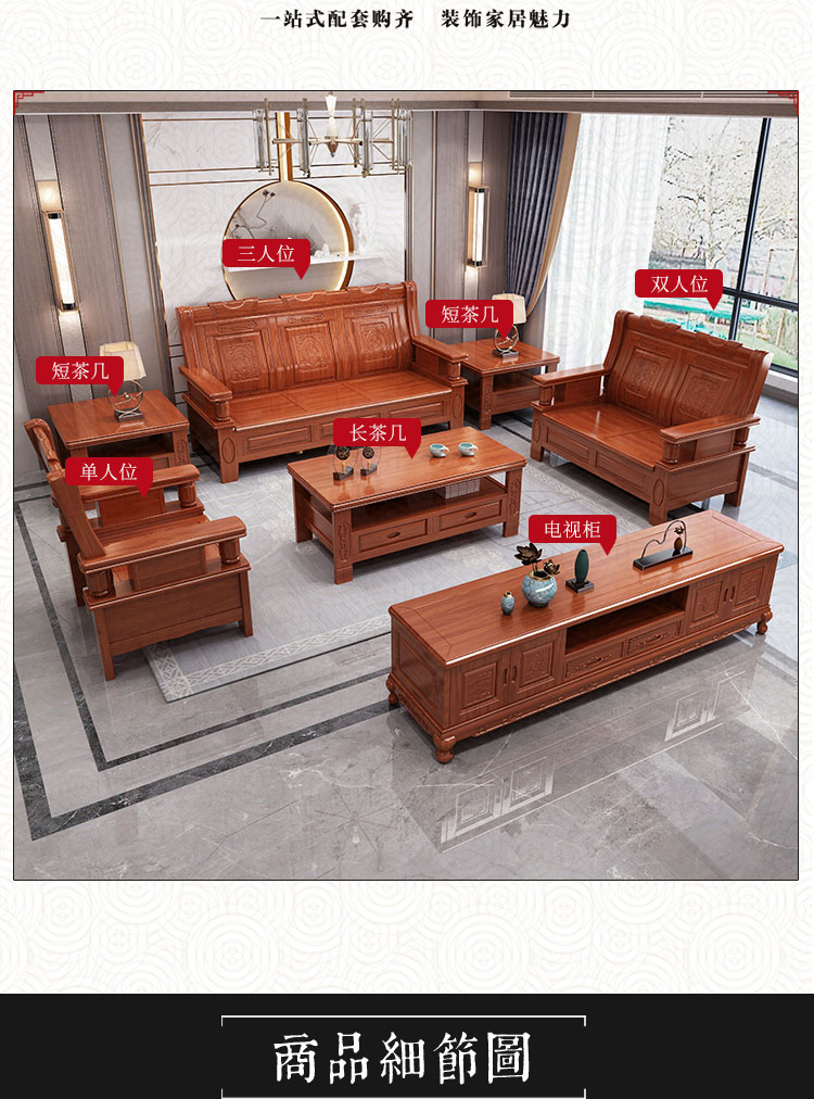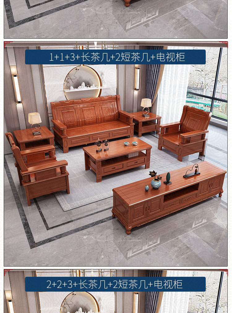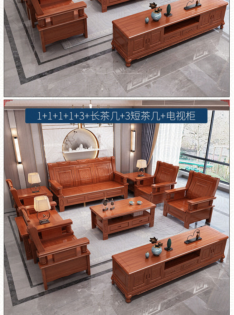 Bộ bàn ghế sofa gỗ rắn kiểu Trung Quốc cổ điển kết hợp phòng khách nông thôn bằng gỗ gỗ ba người mùa đông và mùa hè bộ đồ nội thất sử dụng kép