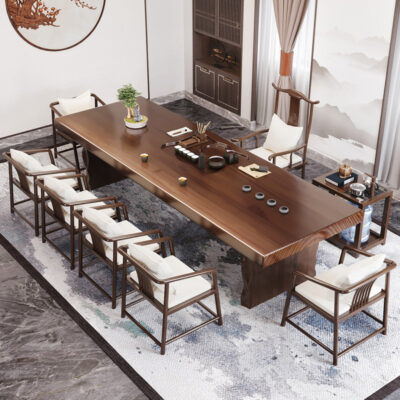Bộ bàn ghế trà gỗ nguyên khối đầy đủ phong cách Trung Quốc mới Bàn trà gia đình phòng khách đơn giản bàn cà phê văn phòng bảng lớn Bàn trà kung fu