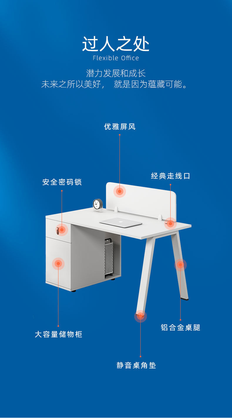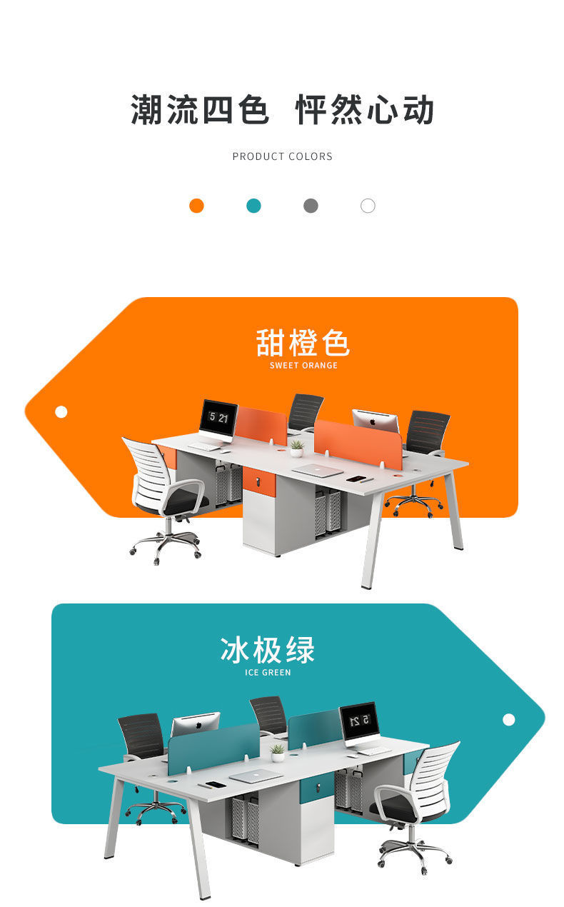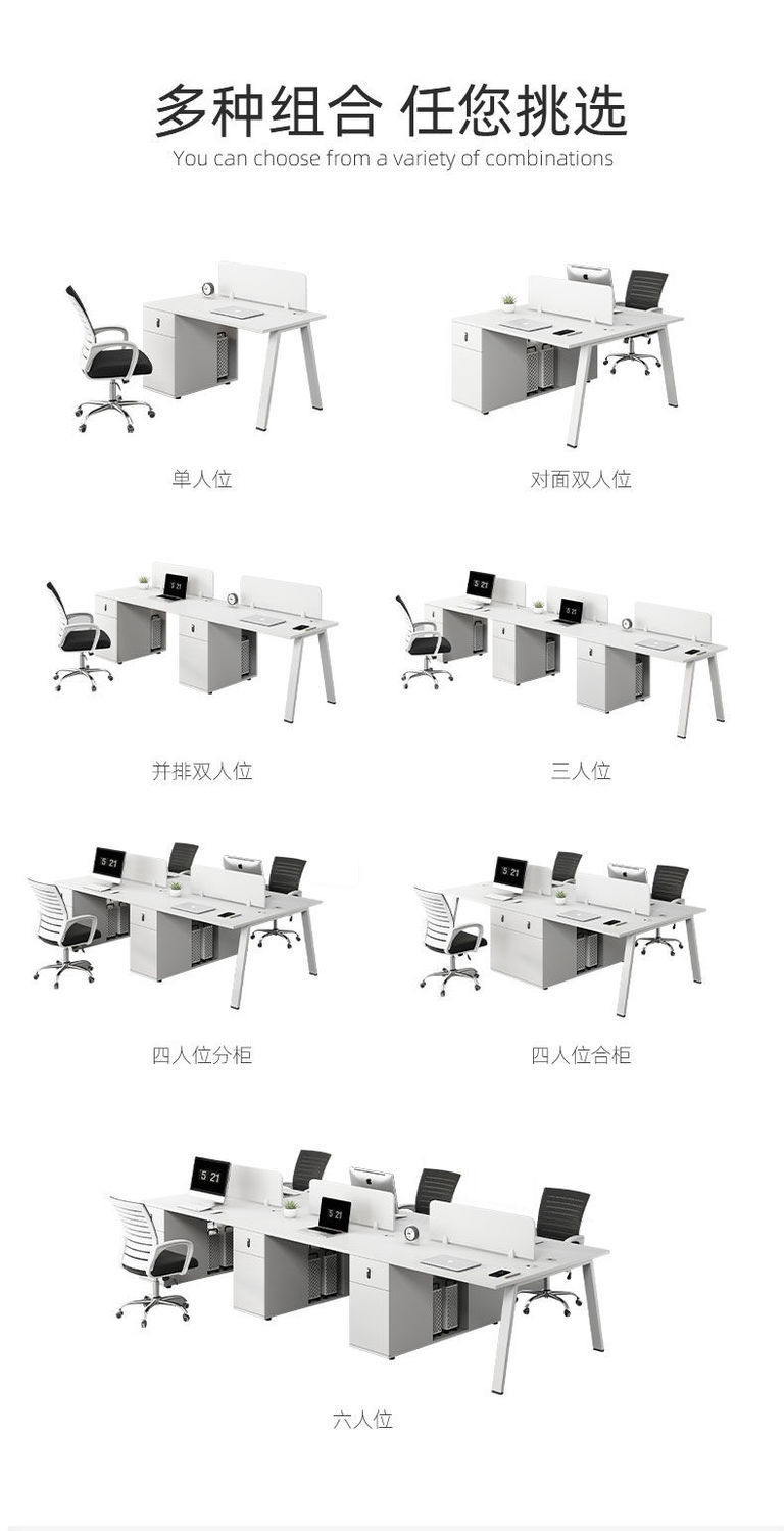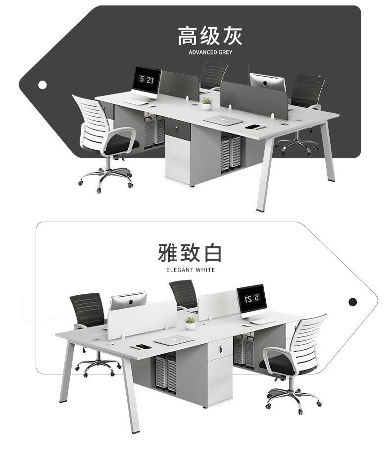 Bộ bàn ghế văn phòng kết hợp màu trắng đơn giản hiện đại 2/4/6 bàn nhân viên màn hình văn phòng Phòng trạm