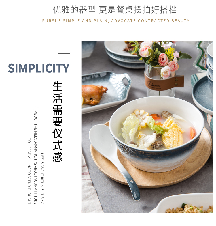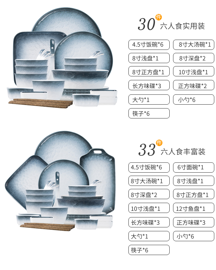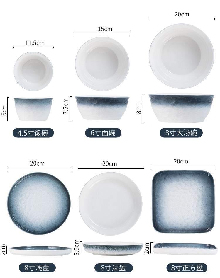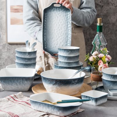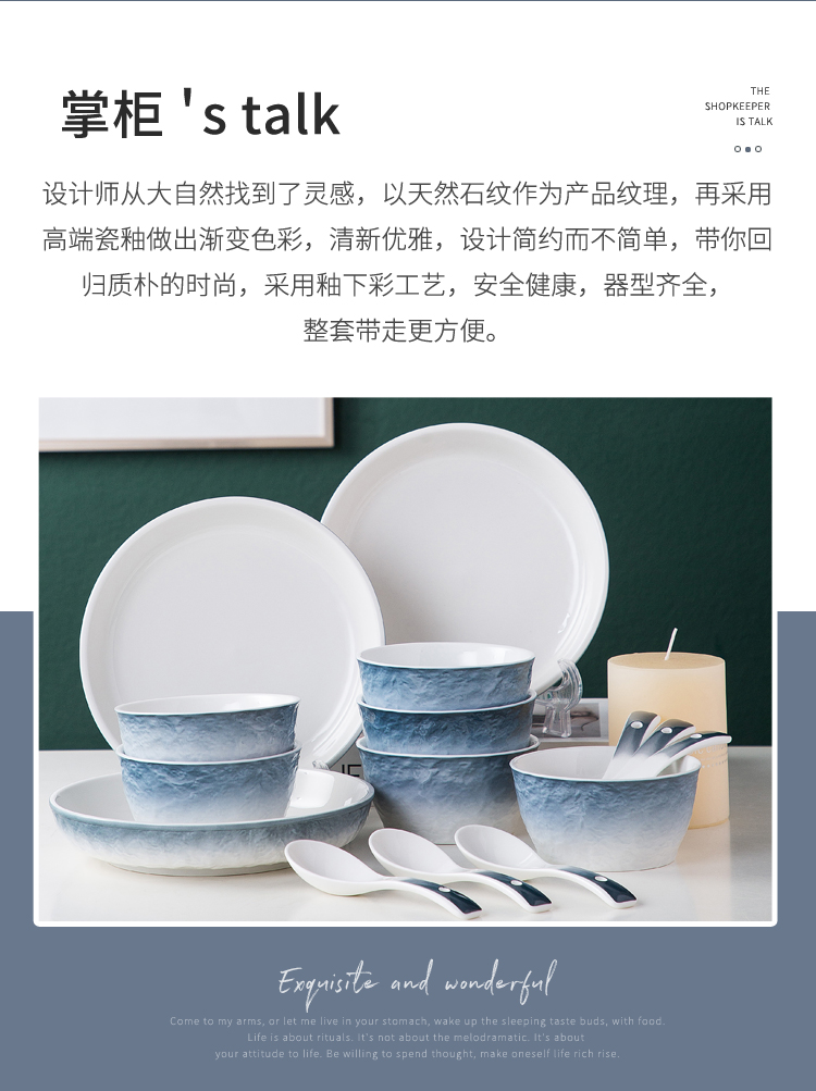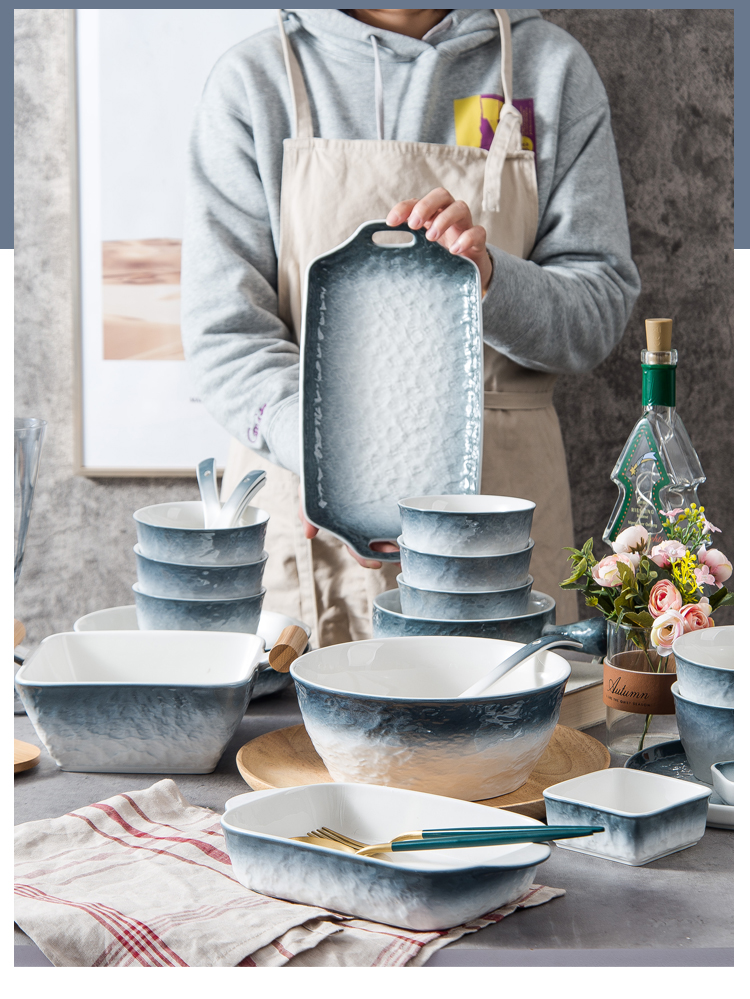 Bộ bát đĩa dành cho gia đình từ 2-6 người, màu loang lạ mắt, phong cách Bắc Âu.