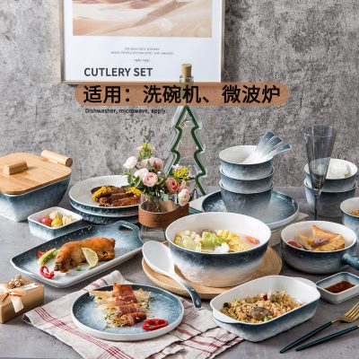 Bộ bát đĩa dành cho gia đình từ 2-6 người, màu loang lạ mắt, phong cách Bắc Âu.