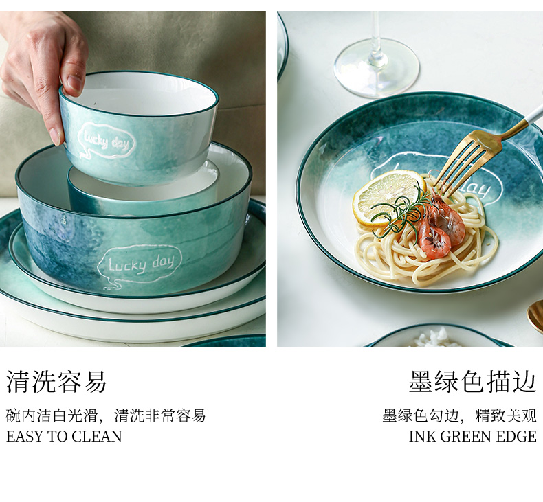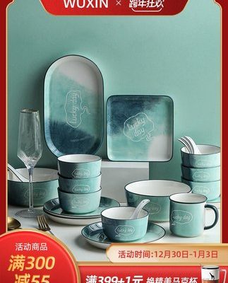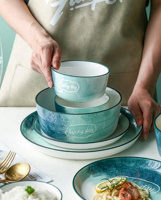 Bộ bát đĩa gốm sứ , màu xanh loang bắt mắt , hàng cao cấp Trung Quốc.