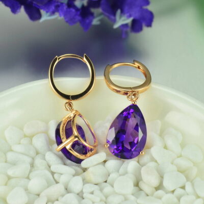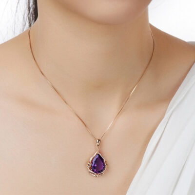 Bộ Châu Âu Cao Cấp Vòng Tay Thạch Anh Tím Lá Nhẫn Kim Cương Tím Thời Trang Hình Giọt Nước Bông Tai Nàng Tiên Cá Mặt Dây Chuyền Thạch Anh Tím
