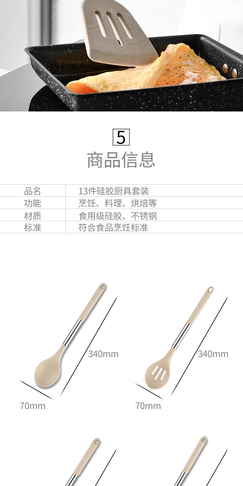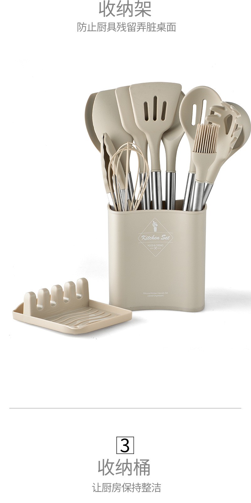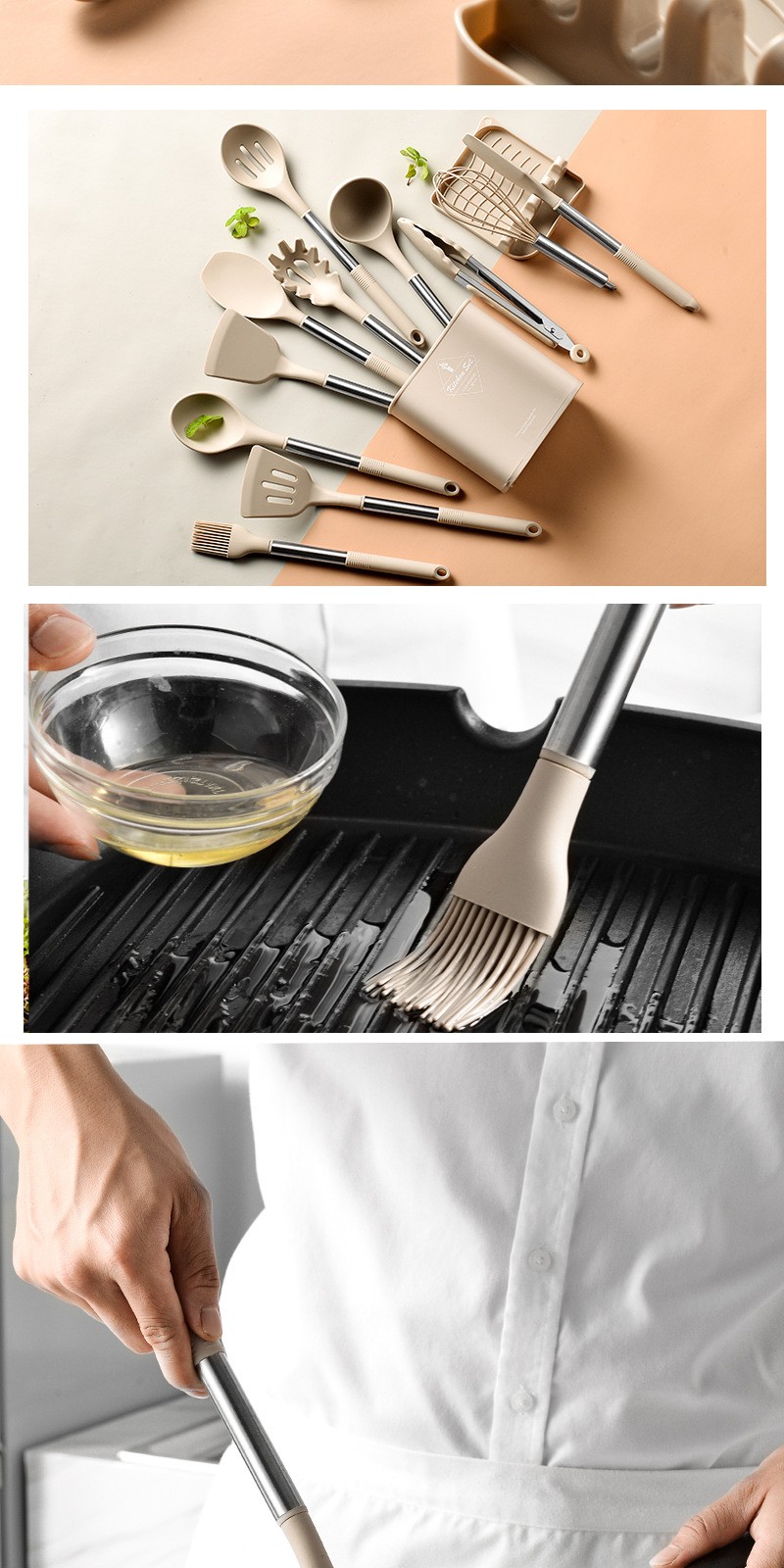 Bộ dao thìa silicone có giá trị cao Bộ đồ dùng nhà bếp chống dính cấp thực phẩm gia dụng Bộ đồ dùng nhà bếp đặc biệt