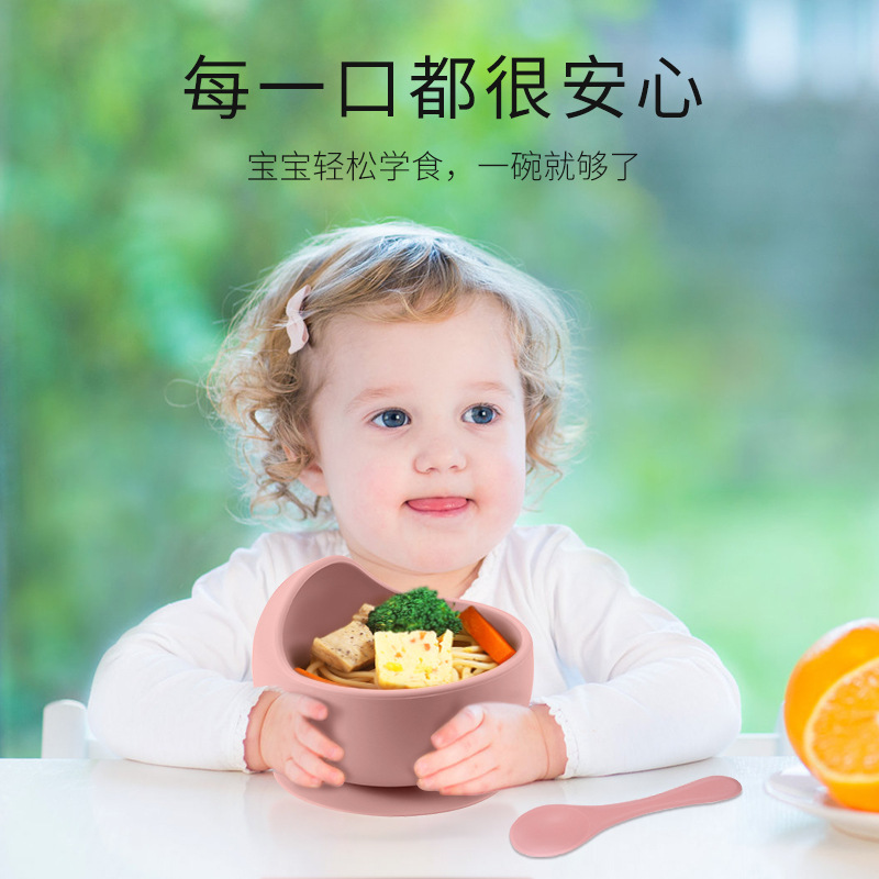 Bộ đồ ăn bằng silicon hoạt hình trẻ em đĩa thìa nĩa thức ăn cho bé bổ sung bát bán buôn bát silicone cho bé