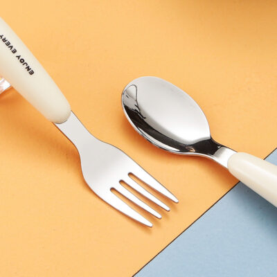 Bộ đồ ăn bằng thép không gỉ 304 cho bé bé trẻ em muỗng nĩa tay cầm ngắn bổ sung thực phẩm đào tạo trẻ em thìa cho bé