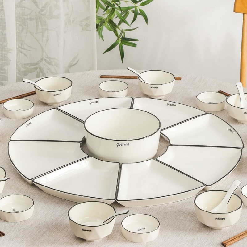Bộ đồ ăn đĩa sứ Bộ bát đĩa đầy đủ Bộ đồ gia dụng Kết hợp tráng men màu Bộ bát bát Bộ bát đũa Bộ bát đĩa