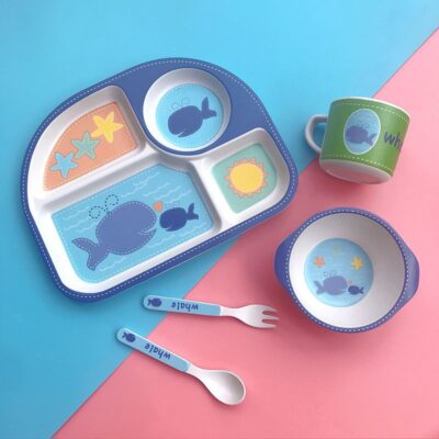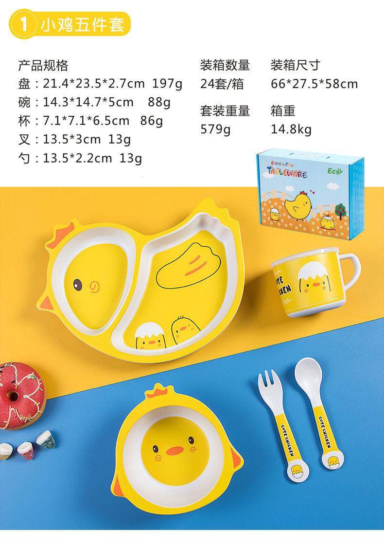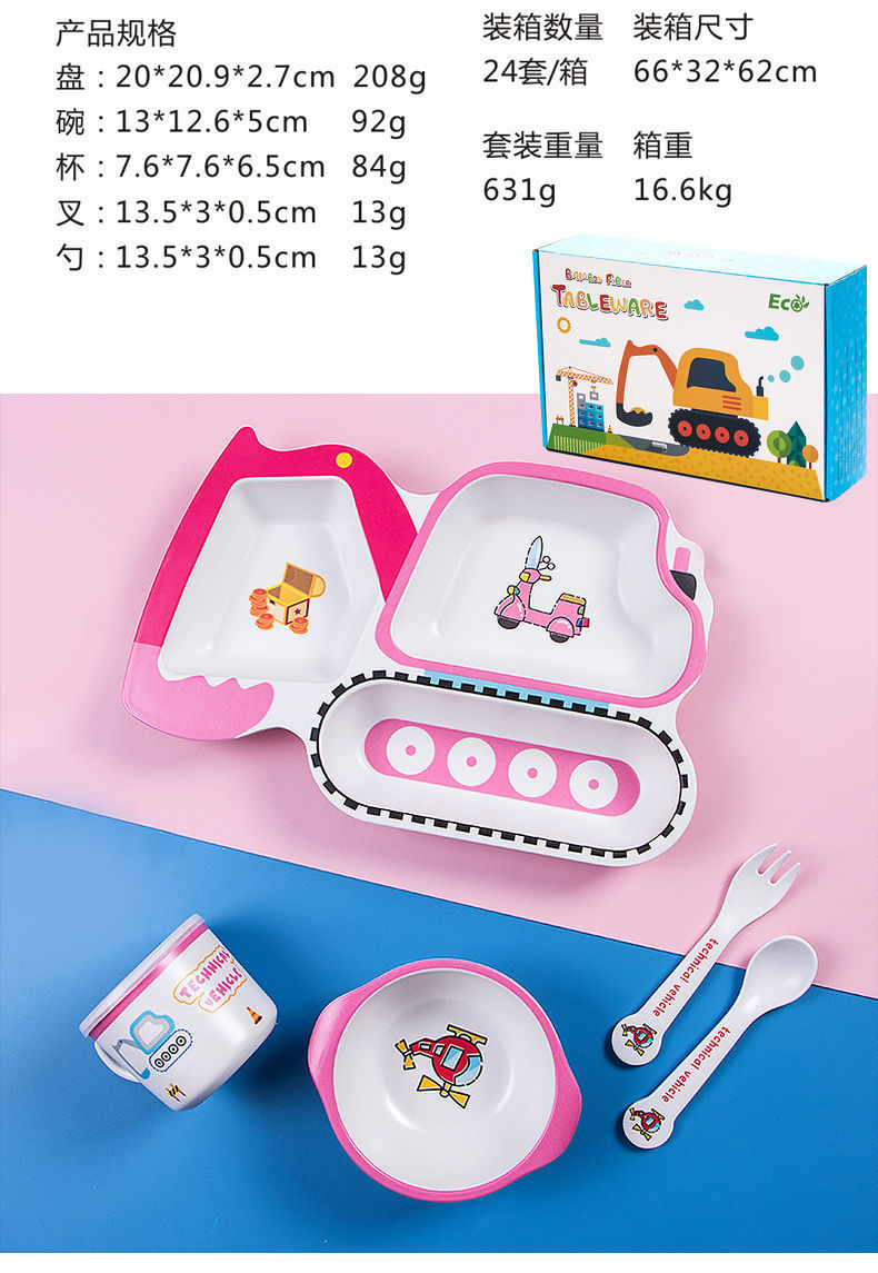 Bộ đồ ăn trẻ em mẫu giáo bộ đồ ăn trẻ em ăn chia lưới tấm sợi tre bát cơm hoạt hình
