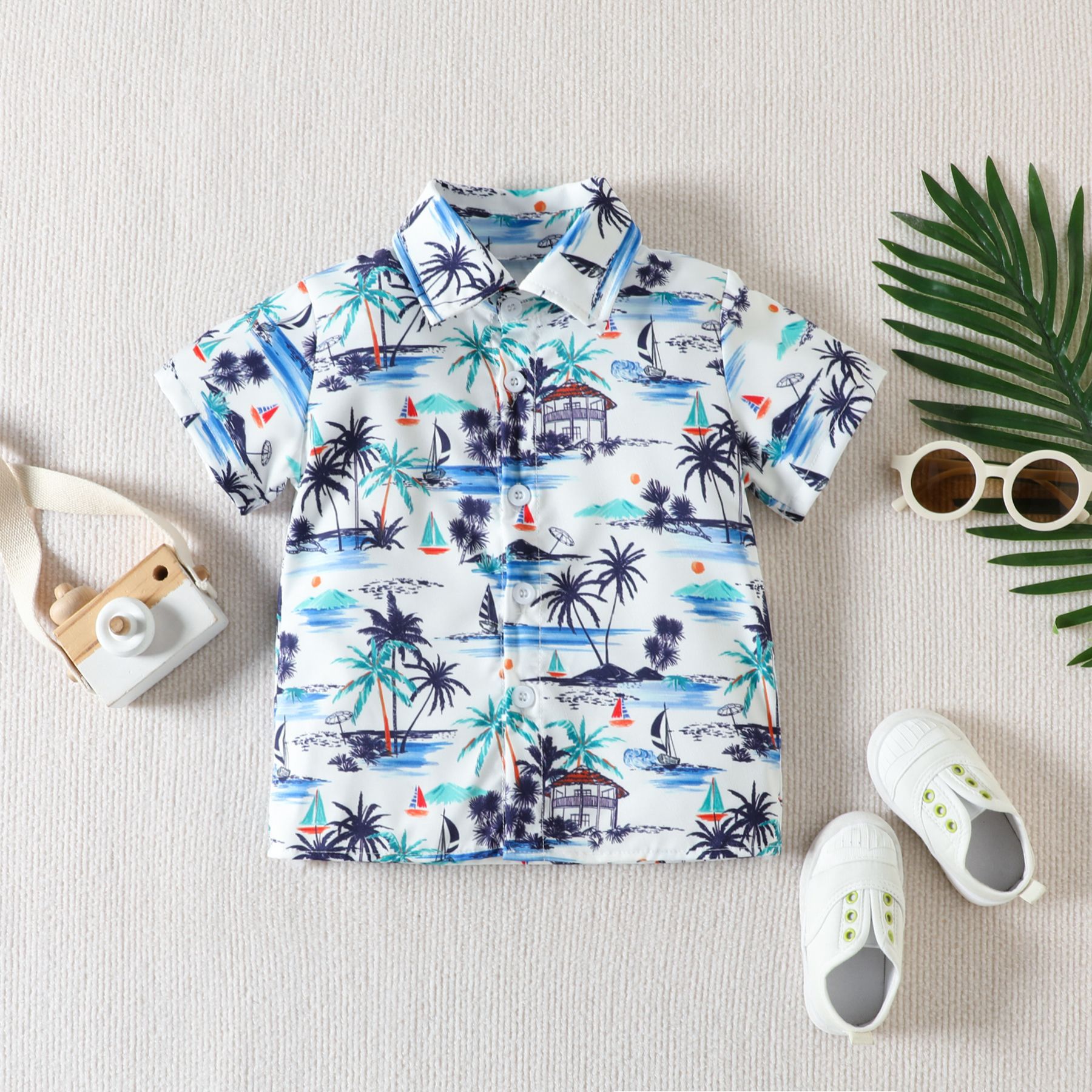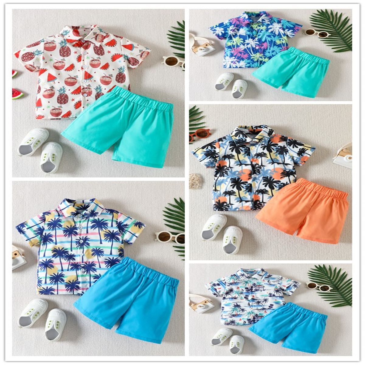 Bộ đồ bé trai mùa hè 2023 mới trẻ em quần áo trẻ em đẹp trai quần áo mùa hè lưới đỏ đi biển bộ đồ hai mảnh ngắn tay
