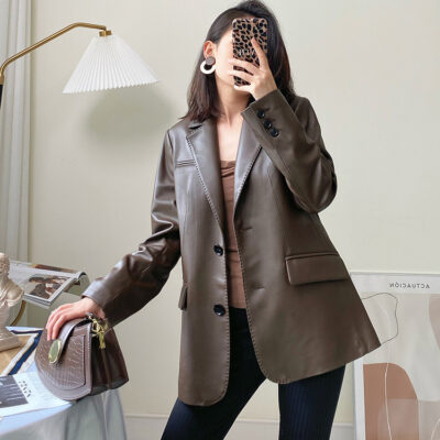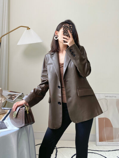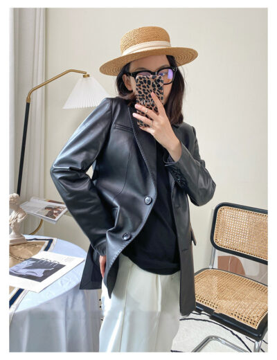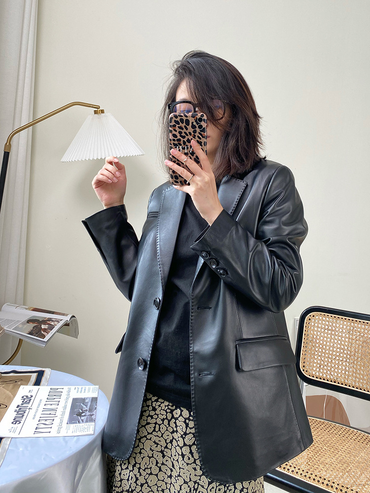 Bộ đồ da cao cấp quần áo nữ mùa xuân 2023 áo khoác da mới áo khoác da nữ màu đen áo khoác da phù hợp với áo khoác nữ