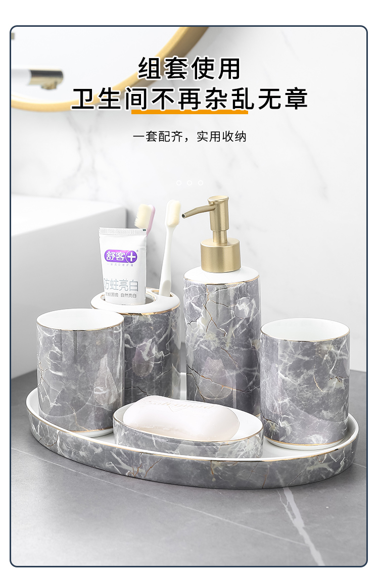 Bộ đồ dùng phòng tắm sang trọng nhẹ rửa cốc bộ cốc nước súc miệng phòng tắm bộ 5 mảnh khay sứ đặt chậu rửa nhà