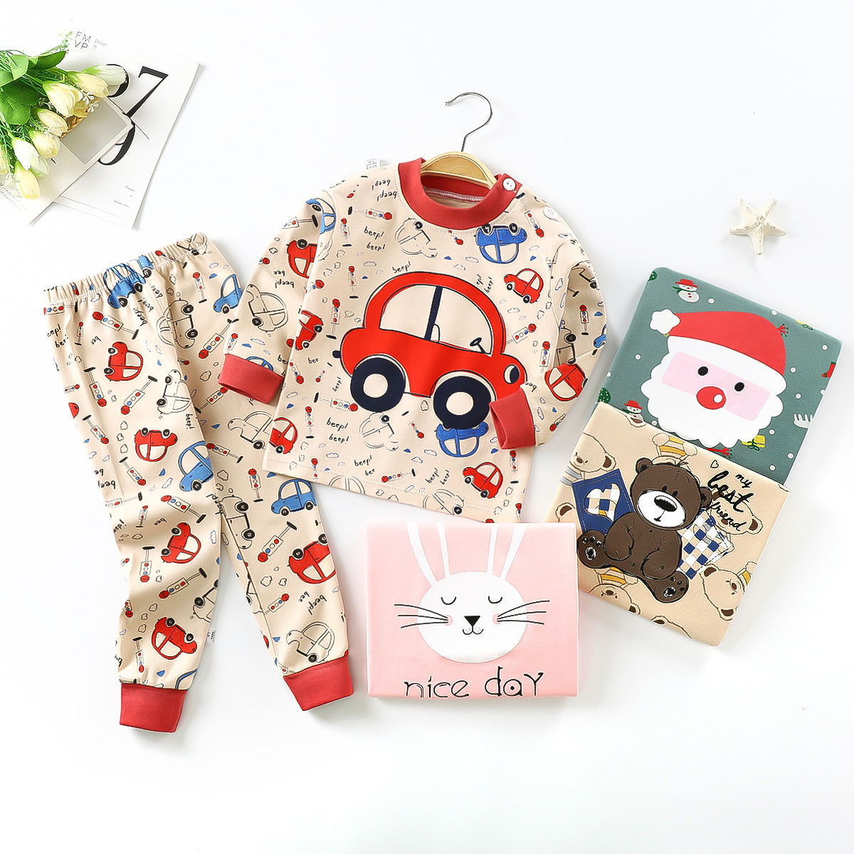 Bộ đồ lót trẻ em nguyên chất cotton bé trai quần áo mùa thu đồ ngủ bé dài Johns ấm áp nhà bé gái quần áo cotton quần áo trẻ em