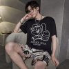 Bộ đồ ngủ của nam giới mùa hè băng lụa quần ngắn tay máy lạnh phòng phục vụ tại nhà phần mỏng mô phỏng lụa phù hợp với người cha trung niên