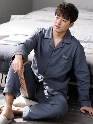 Bộ đồ ngủ của nam giới mùa xuân và mùa thu mùa xuân và mùa thu bằng vải cotton thuần khiết dài tay Áo khoác mặc nhà của nam giới cotton mùa thu và mùa đông Bộ đồ mùa đông mỏng