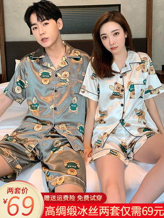 Bộ đồ ngủ đôi của phụ nữ mùa hè băng lụa ngắn tay mỏng phần 2022 mới của nam giới mùa xuân và mùa hè lụa phù hợp với đồ mặc nhà