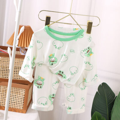 Bộ Đồ Ngủ Mùa Hè 2023 Trẻ Em Homewear Không Xương Bé Trai Và Bé Gái Chín Điểm Tay Điều Hòa Không Khí Bộ Quần Áo
