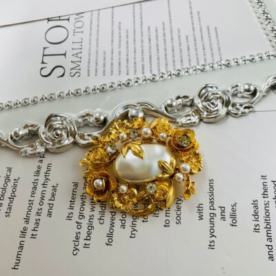 Bộ hoa cổ điển thời trung cổ Bộ vòng cổ hoa ngọc trai chạm khắc ba chiều bằng vàng thật chất lượng cao