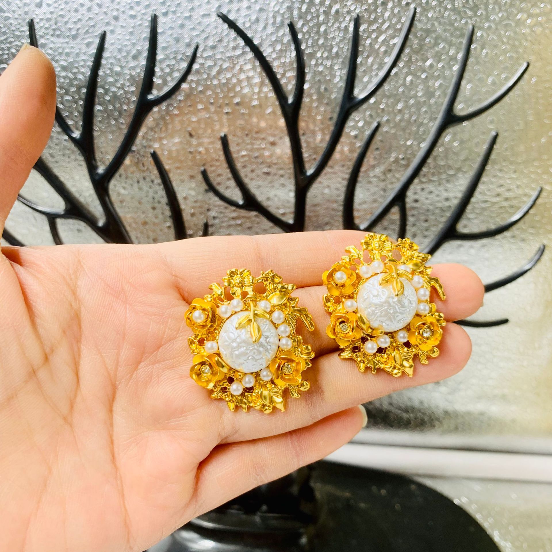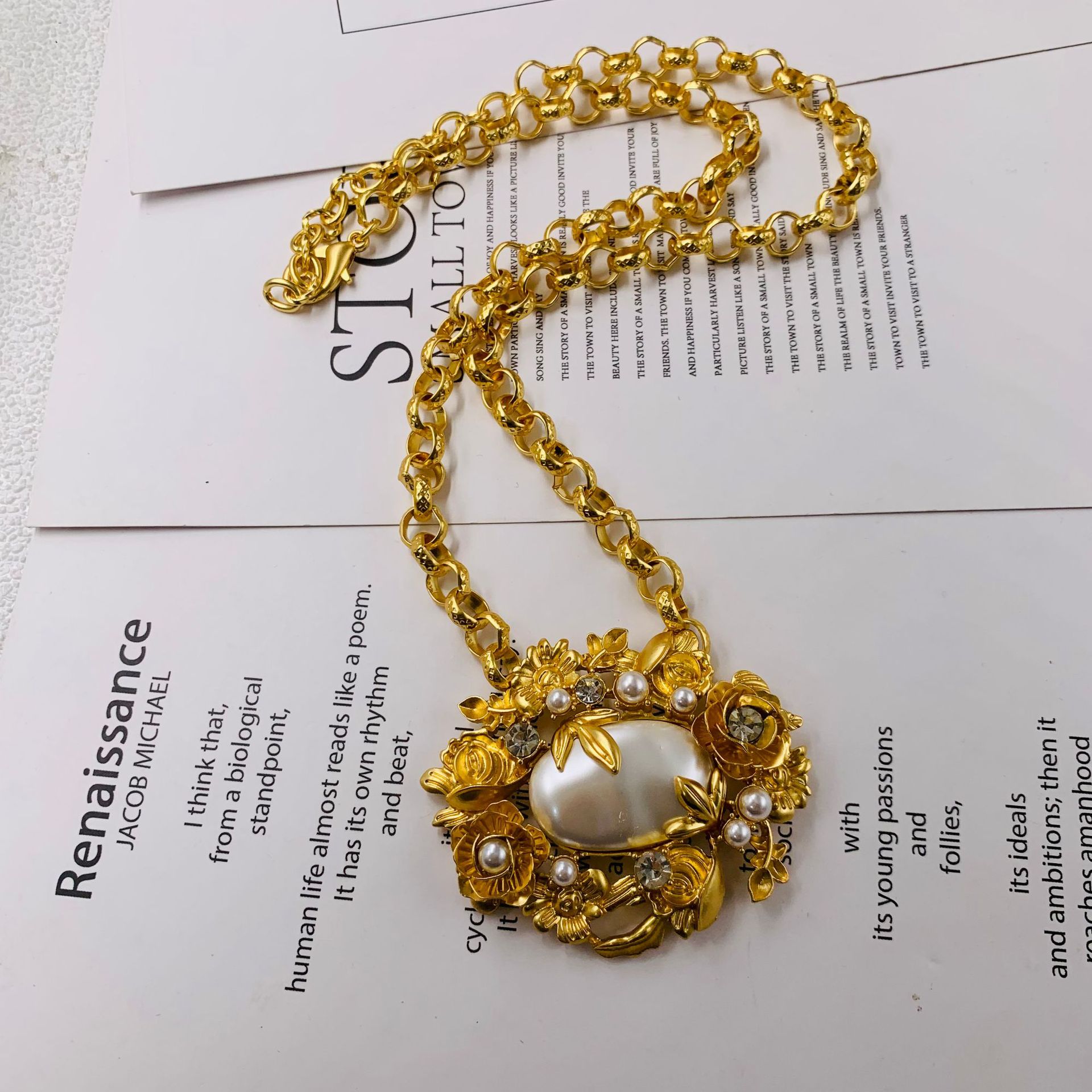 Bộ hoa cổ điển thời trung cổ Bộ vòng cổ hoa ngọc trai chạm khắc ba chiều bằng vàng thật chất lượng cao