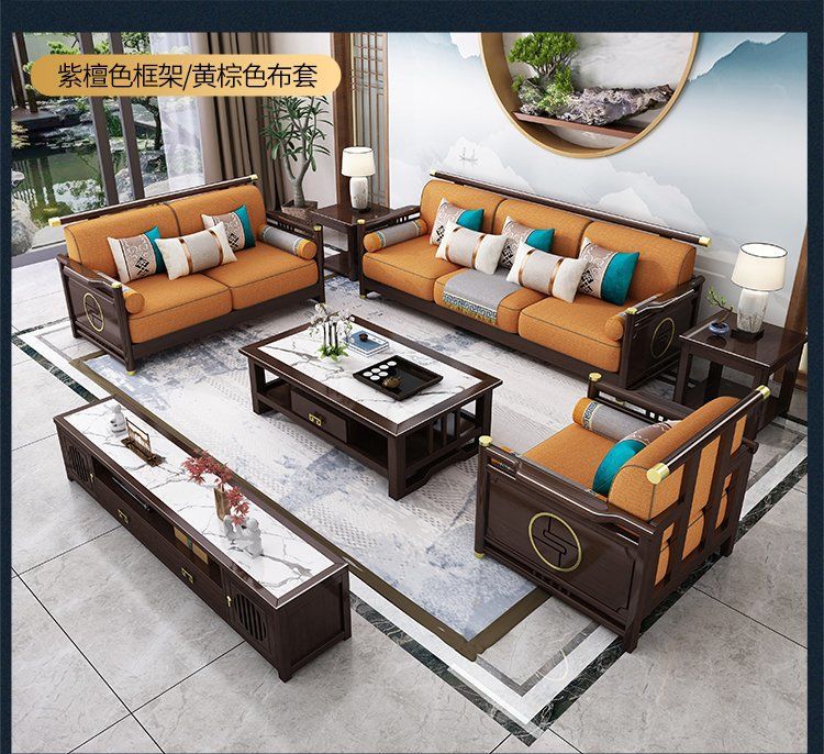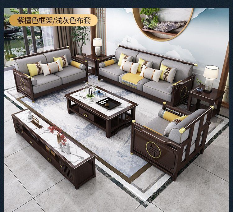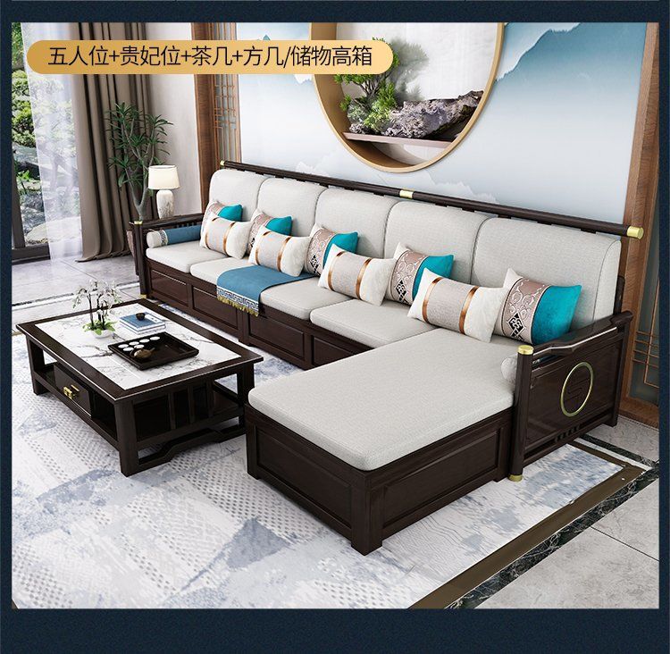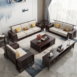 Bộ kết hợp ghế sofa gỗ nguyên khối phong cách Trung Quốc mới bán buôn bộ ghế sofa phòng khách đơn giản bằng gỗ lưu trữ mùa đông và mùa hè