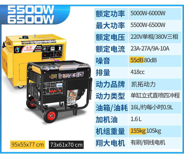 Bộ máy phát điện Diesel 5kw hộ gia đình 220V nhỏ câm 3/6/8/10KW đơn ba pha 380V điện áp kép 2