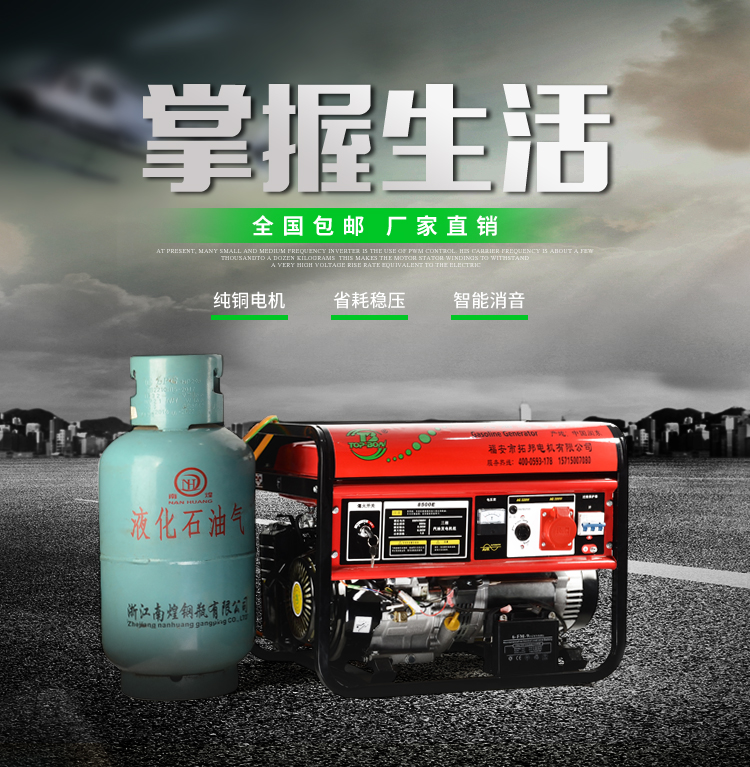 Bộ máy phát điện khí đốt hóa lỏng gia đình nhỏ một pha chạy xăng sử dụng kép 380V ba pha 2 3 5 6 7 8KW
