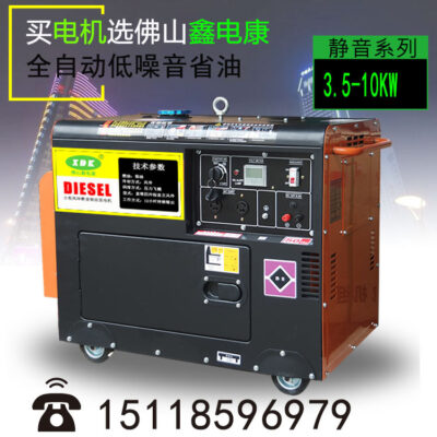 Bộ máy phát điện không ồn diesel 10KVA hộ gia đình nhỏ ats xi lanh đơn 6 8KW kilowatt di động ba pha 380 AC