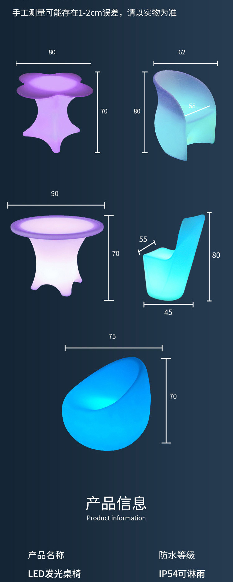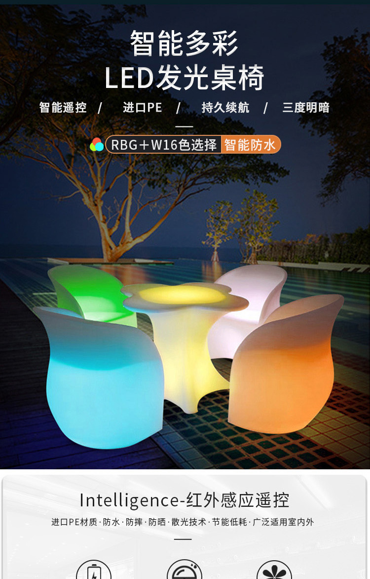 Bộ nội thất nhà hàng hoàn chỉnh, bàn ghế phát sáng LED, sân thượng ngoài trời khách sạn, quầy bar giải trí, kết hợp bistro, ghế đẩu hoa mận
