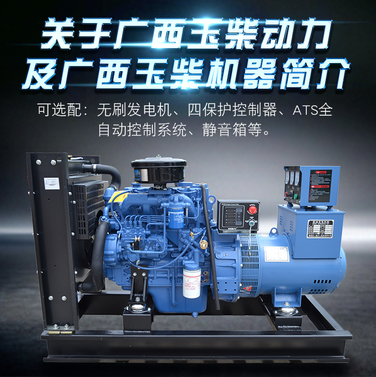 属于标准配置产品,功率范围:15-100KW,标配机械泵,有刷发电机。柴油机配备智能数字仪表,发电机配备机械仪表,不含控制器,可联系在线客服升级配置无刷发电机、控制器。(玉柴动力为玉柴机器的子公司,100KW以下四缸柴油机为玉柴动力自己生产,质量可靠,享受全国联保服务。100KW以上六缸柴油机为贴牌产品,质量较差,工厂客户作为常用电源不推荐购买,只适合做招投标备用使用)。为国二排放柴油机