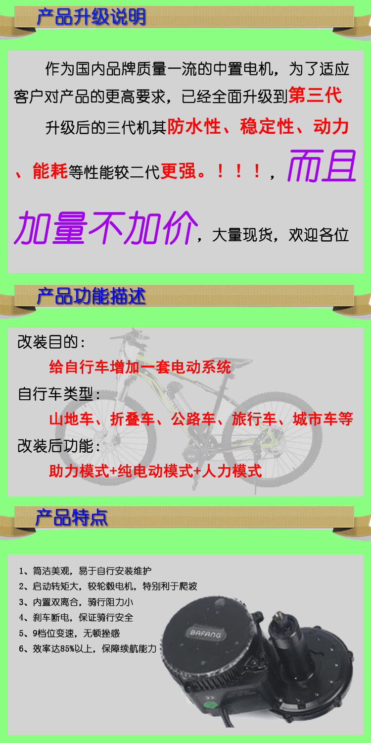 Bộ phụ kiện động cơ đặt giữa Bafang ba thế hệ mới chính hãng xe đạp leo núi Phụ kiện động cơ tăng áp điện được sửa đổi